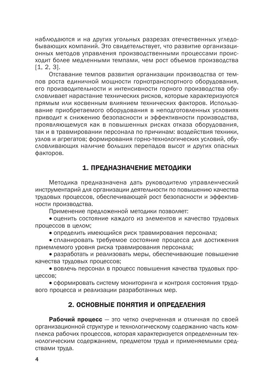 Рассмотрены понятия трудового процесса как совокупности его основных элементов: персонал, оборудование, рабочие процессы и условия их осуществления, а также качества трудового процесса как степени соответствия состояния его элементов целевым параметрам безопасности и эффективности производства. Показано влияние сочетания состояний элементов на качество трудового процесса в целом и его влияние на риск травмирования персонала. Представлена схема организации деятельности по повышению качества трудовых процессов и алгоритм его повышения, а также алгоритмы работы с персоналом и стандартизации рабочих процессов. Приведены примеры применения методики. Брошюра предназначена для руководителей и специалистов предприятия как методическое пособие для организации деятельности по повышению качества трудовых процессов.