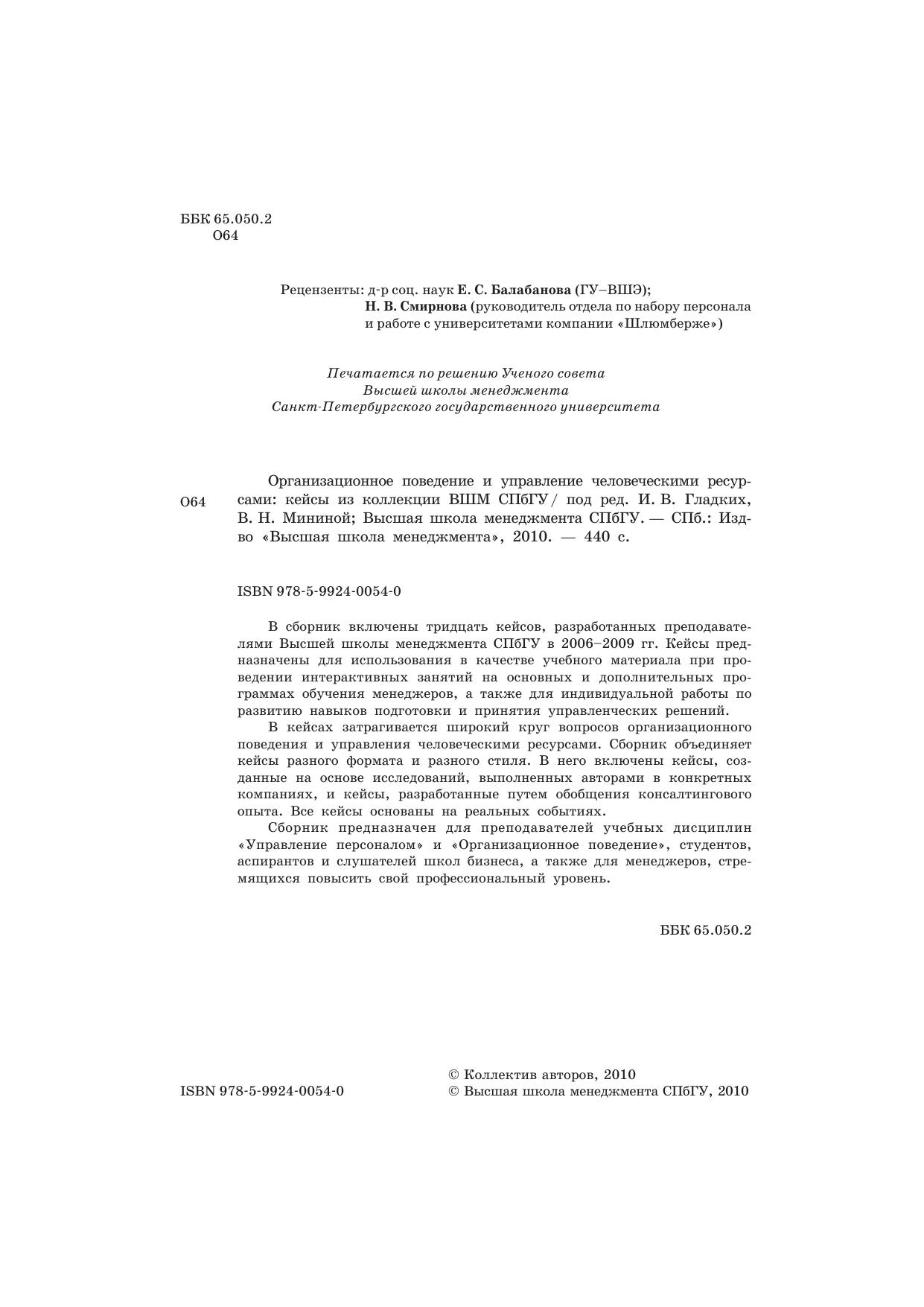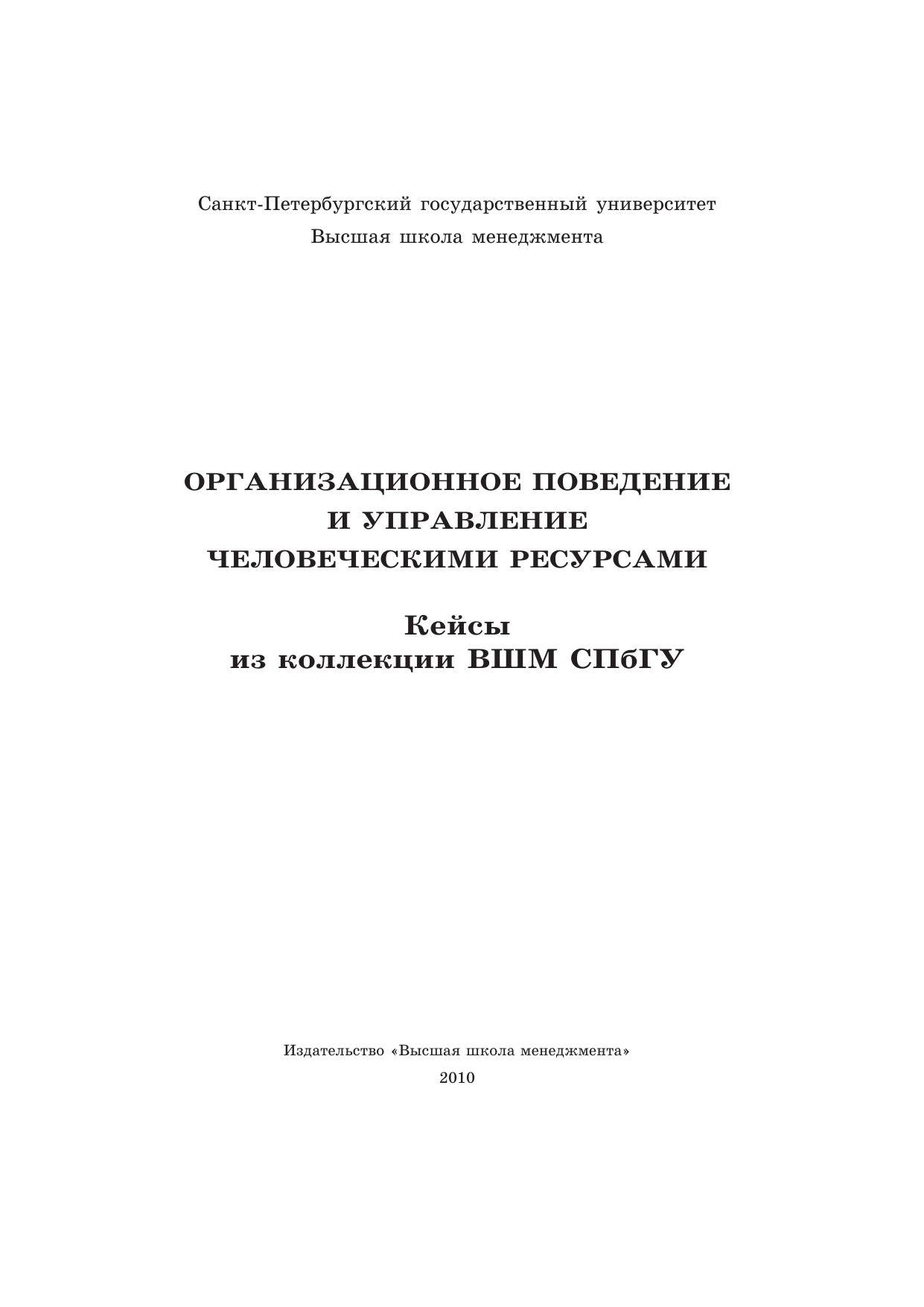 Организационное поведение и управление человеческими ресурсами: кейсы из коллекции ВШМ СПбГУ