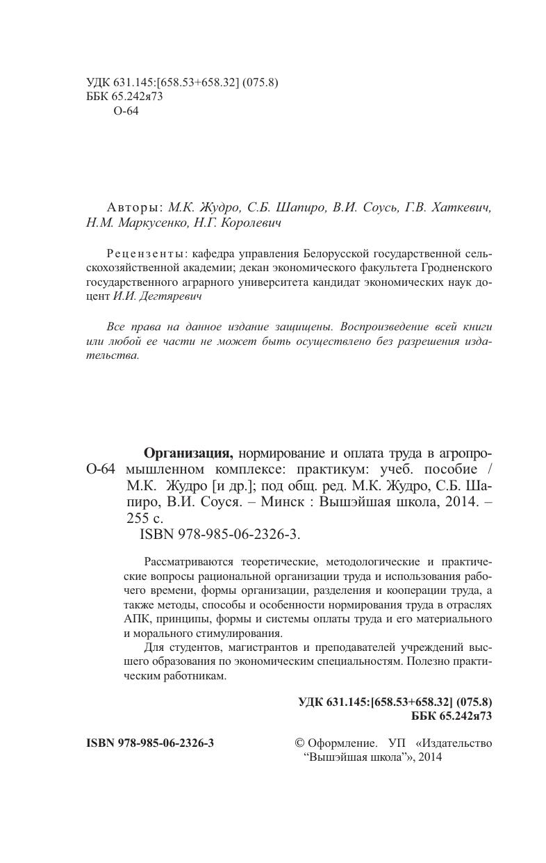 Рассматриваются теоретические, методологические и практические вопросы рациональной организации труда и использования рабочего времени, формы организации, разделения и кооперации труда, а также методы, способы и особенности организации труда в отраслях АПК, принципы, формы и системы оплаты труда и его материального и морального стимулирования. Для студентов, магистрантов и преподавателей экономических специальностей вузов. Полезно практическим работникам.