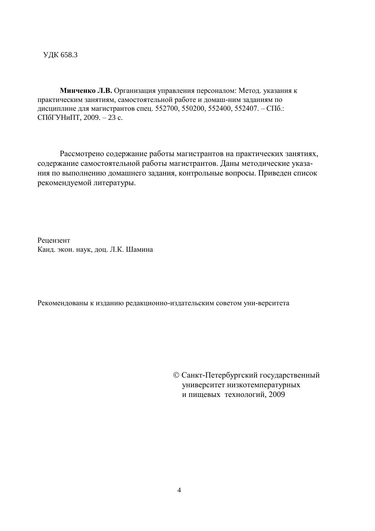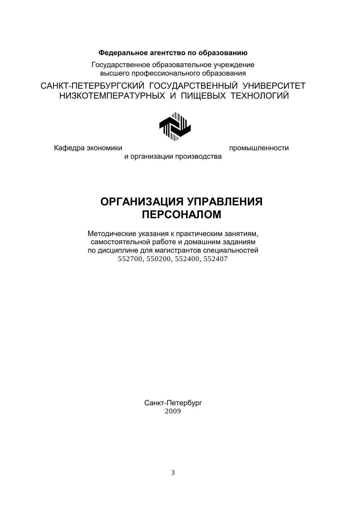 Организация управления персоналом: Методические указания к практическим занятиям, самостоятельной работе и домаш-ним заданиям по дисциплине для магистрантов спец. 552700, 550200, 552400, 552407