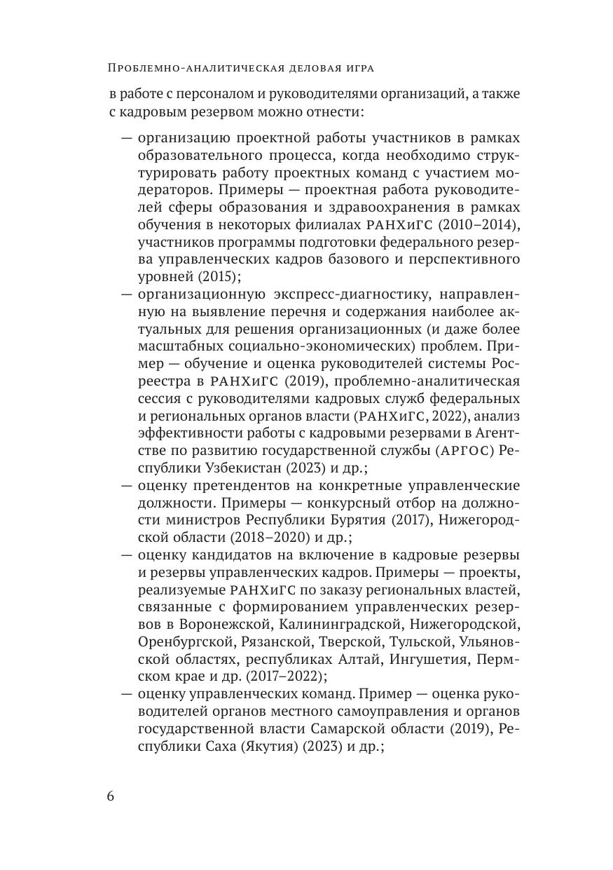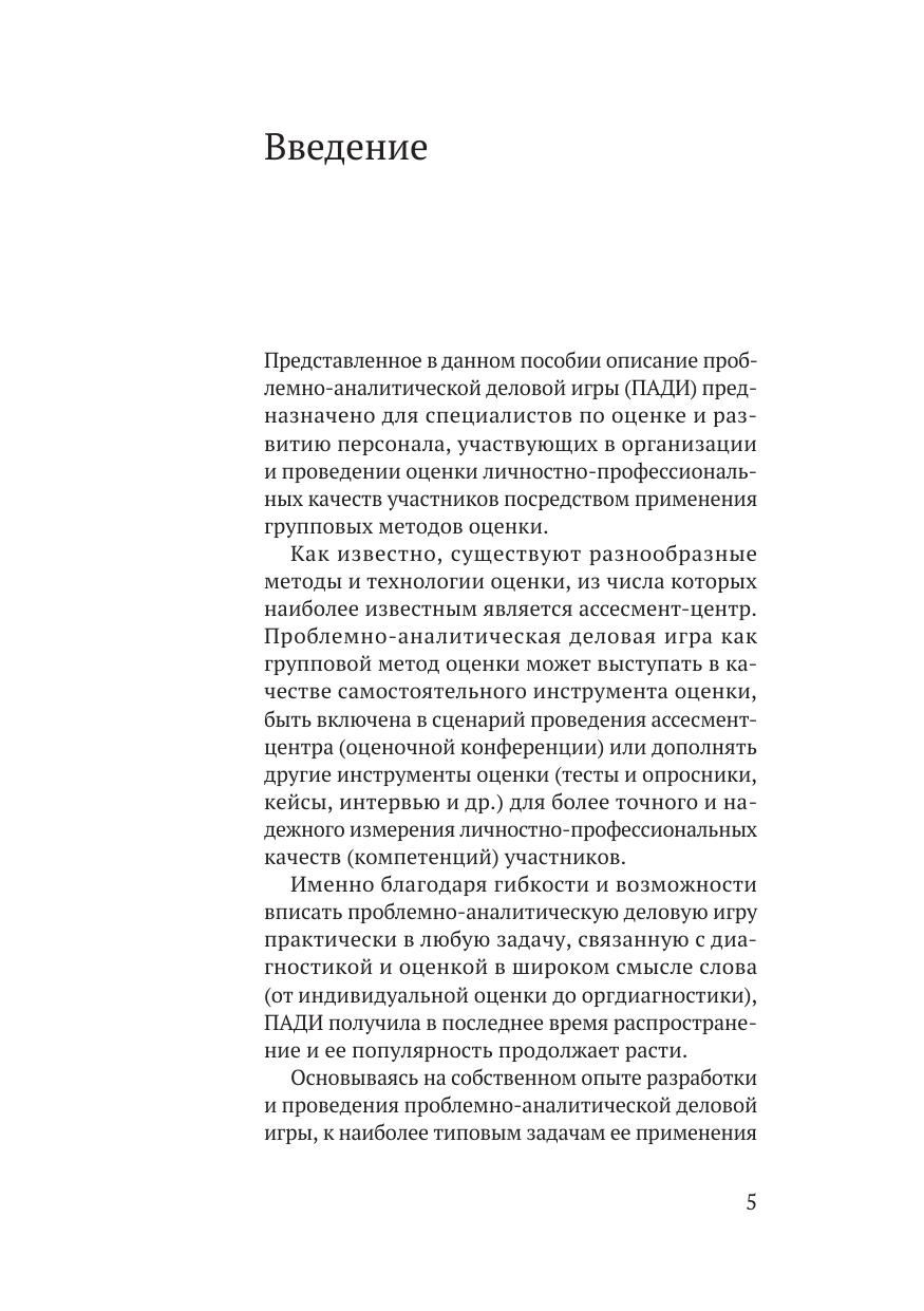 реализуемых в регионах страны факультетом оценки и развития управленческих кадров ВШГУ РАНХиГС, а также в рамках таких масштабных конкурсов, как «Лидеры России». Распространение и начало применения методики и другими провайдерами, вовлечение в работу с методикой значительного числа оценщиков из разных компаний сделало актуальной подготовку подробных методических материалов. Авторский подход к разработке и применению ПАДИ для целей не только оценки, но и развития участников, безусловно, может подвергаться трансформации исходя из специфики аудитории и решаемых задач. При этом понимание первоначального замысла поможет профессионалам, реализующим инструмент в его более эффективном применении.