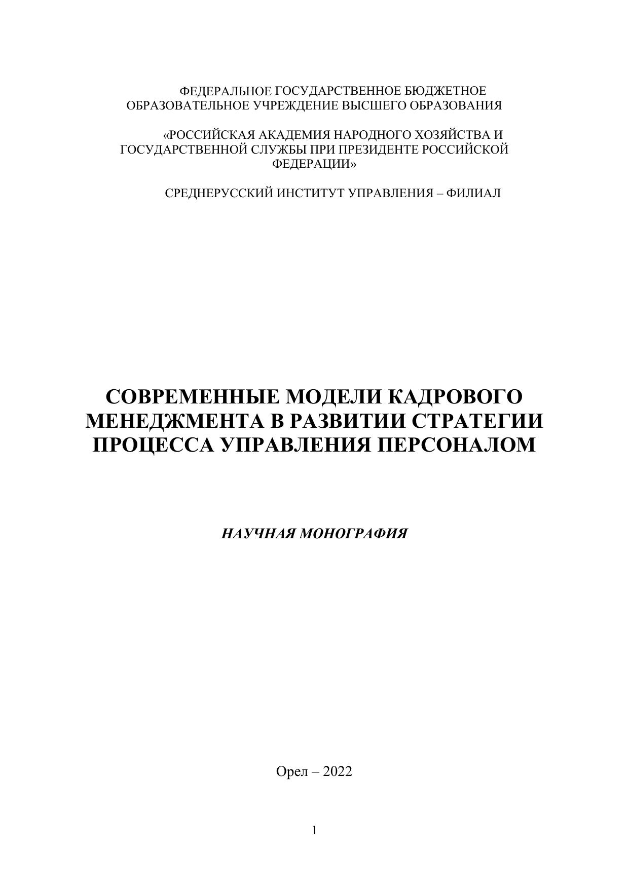 Современные модели кадрового менеджмента в развитии стратегии процесса управления персоналом