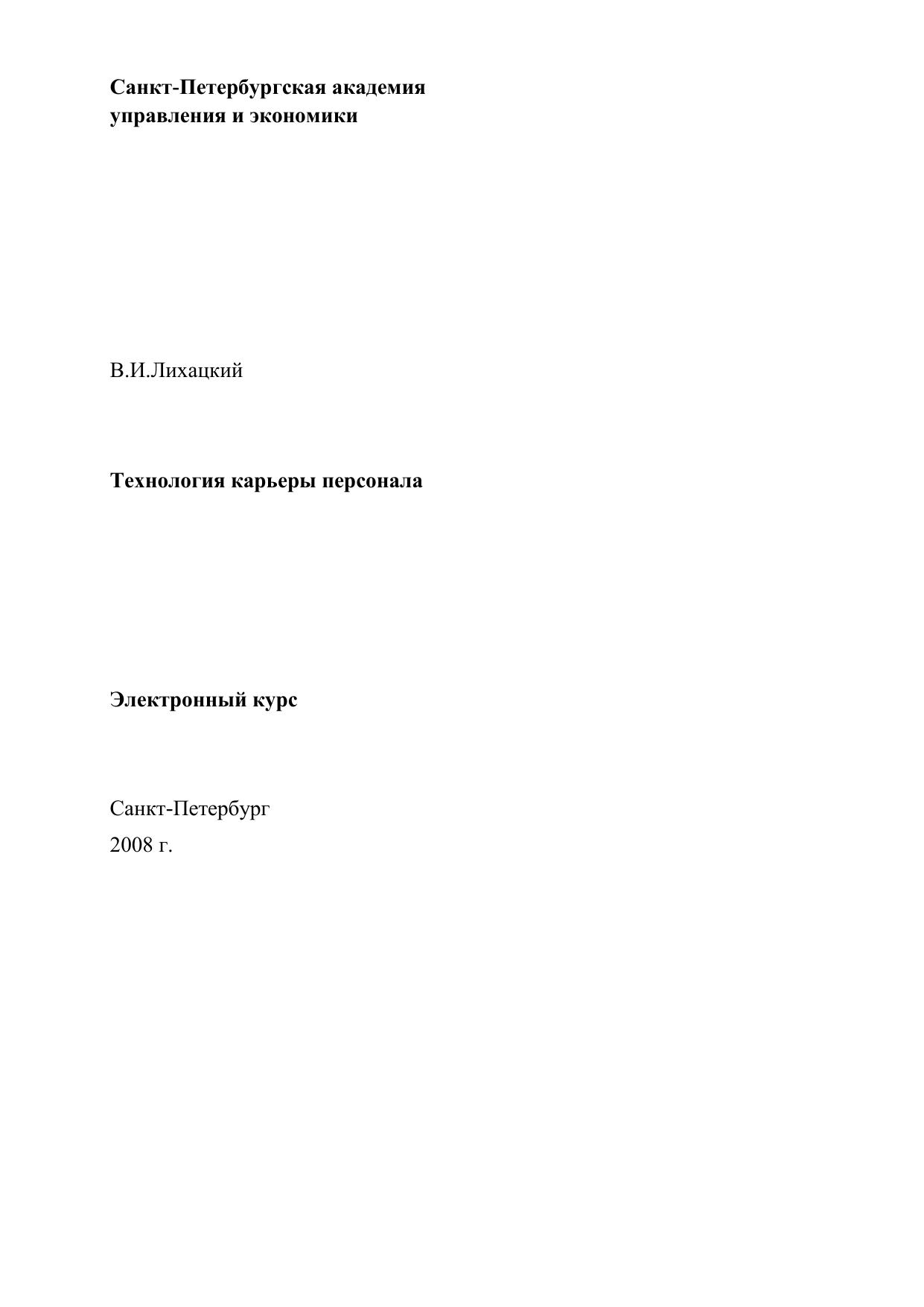 Технология карьеры персонала: Электронное учебное пособие