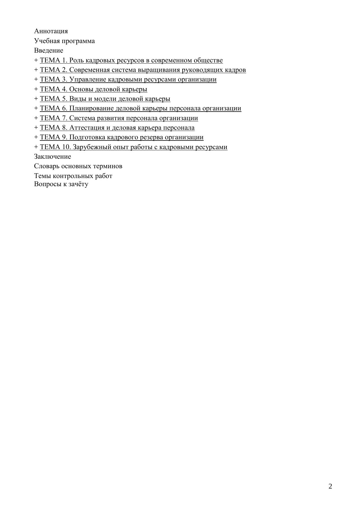 Электронное учебное пособие включает рабочую учебную программу дисциплины, общие методические рекомендации по изучению дисциплины, курс лекций, тесты, словарь терминов. Всесторонне и многогранно рассмотрены вопросы профессиональной ориентации молодежи, способов выращивания руководящих кадров, развития и аттестации персонала, работы с видами кадрового резерва Пособие предназначено для студентов ВУЗов. Электронное учебное пособие для дистанционного обучения