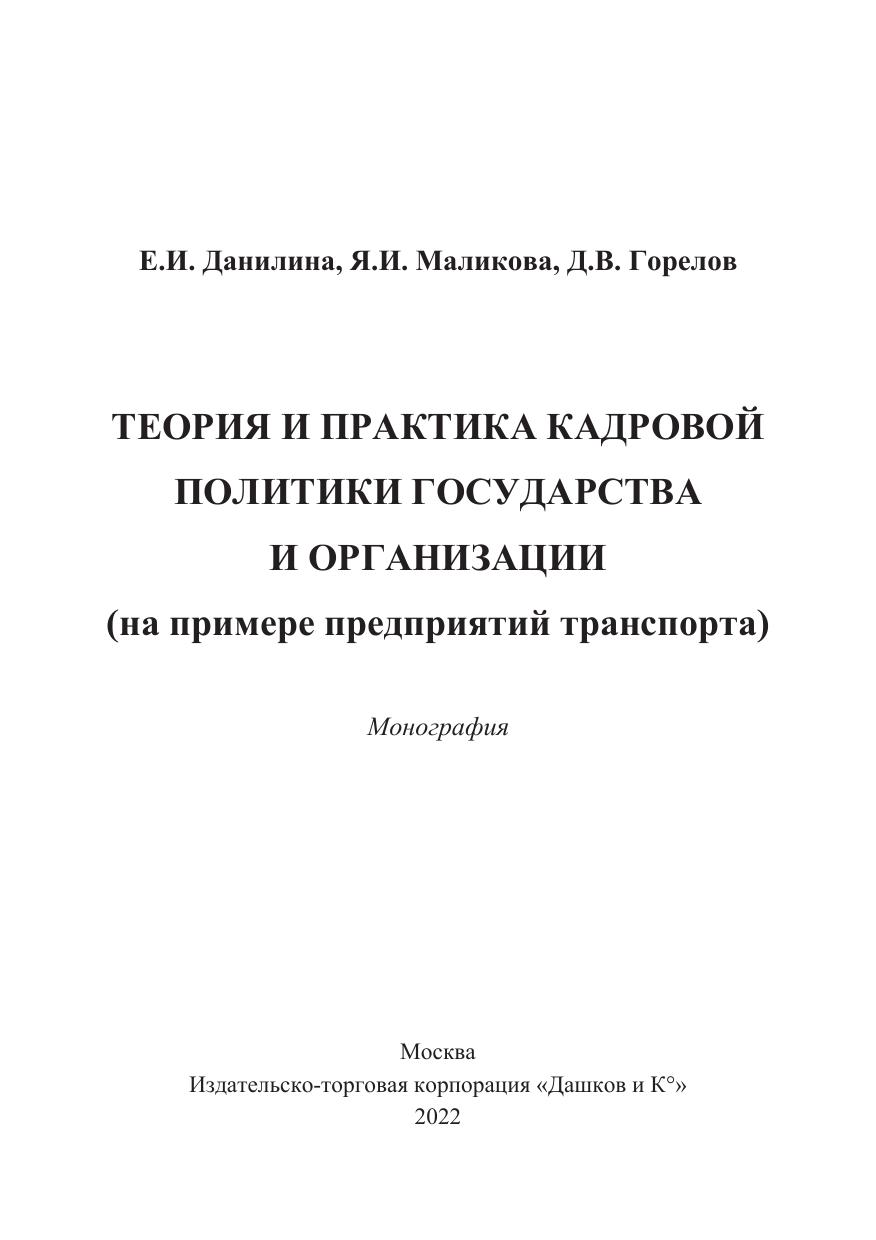 Теория и практика кадровой политики государства и организации (на примере предприятий транспорта)