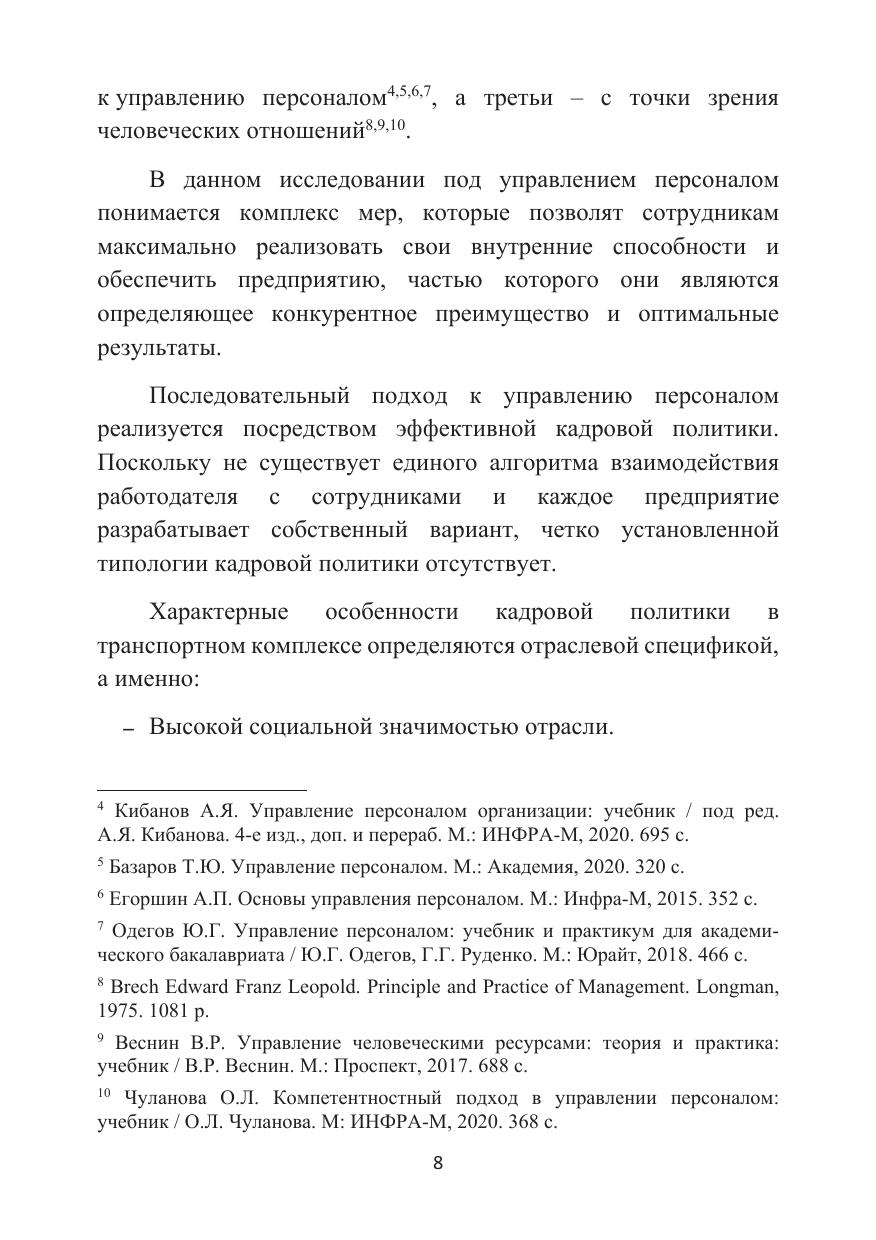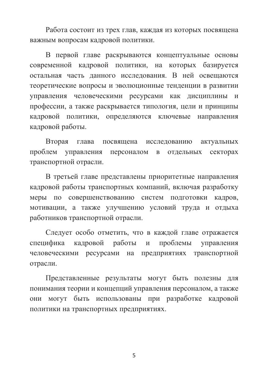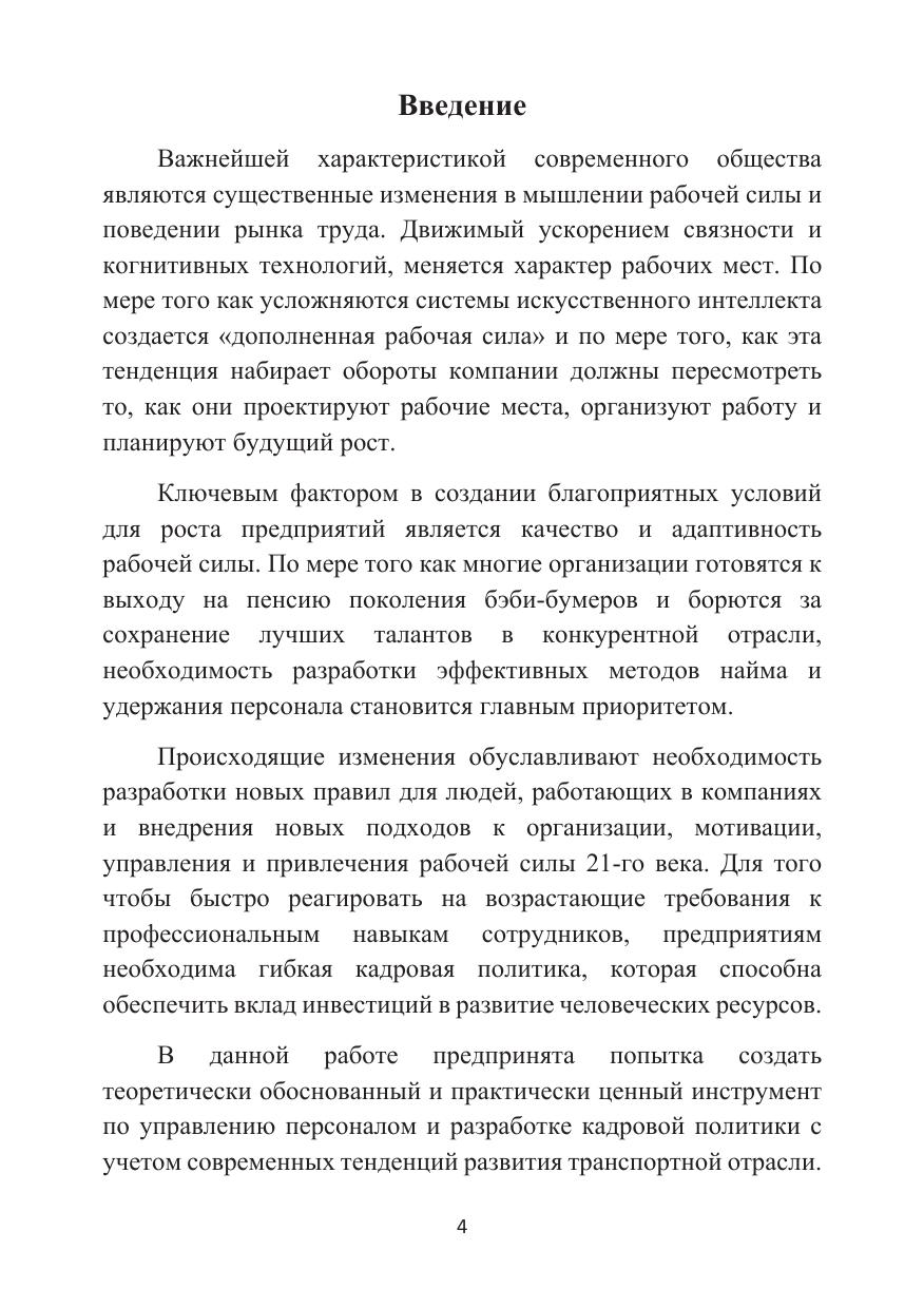В монографии представлены теоретические и методические основы кадровой политики государства и организации на примере предприятий транспорта. Подробно исследуются проблемы кадровой политики на предприятиях транспорта, выделены ее приоритетные направления.
