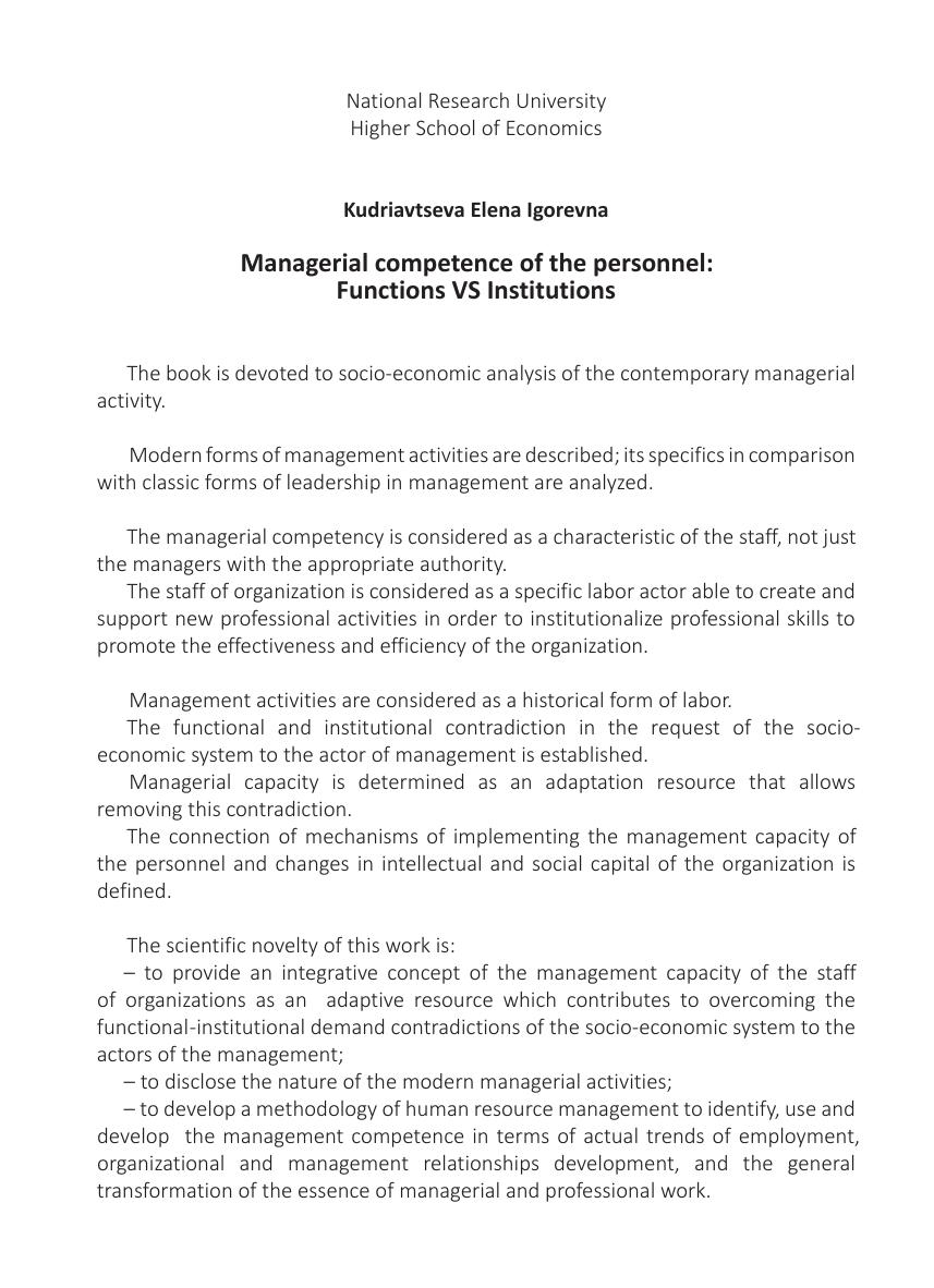 Управленческий потенциал персонала: функции против институций. Монография