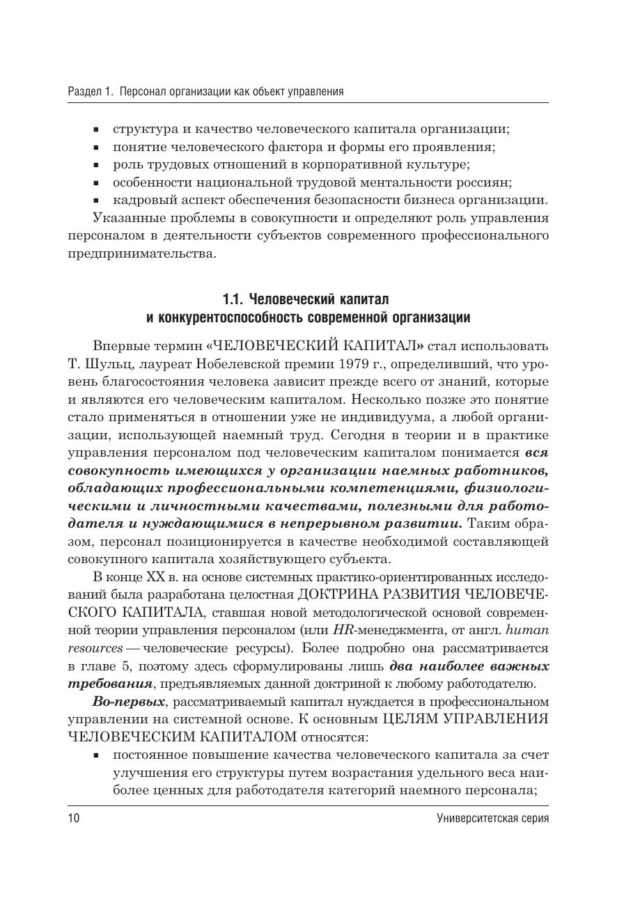 Структура издания обеспечивает возможность глубокого изучения следующих базовых вопросов: роль человеческого капитала как фактора конкурентоспособности современной организации; основы организации работы хозяйствующего субъекта на современном рынке труда; основы зарубежного и отечественного опыта управления персоналом; основные доктрины организации трудовых отношений на микроэкономическом уровне; принципы организации и структура системы управления персоналом в современной организации; место и роль кадровой службы в системе управления персоналом, ее функции, права и ответственность; операционные подсистемы управления персоналом и особенности их функционирования в современных отечественных условиях; взаимодействие персонального менеджмента с другими элементами комплексной системы управления современной организацией.