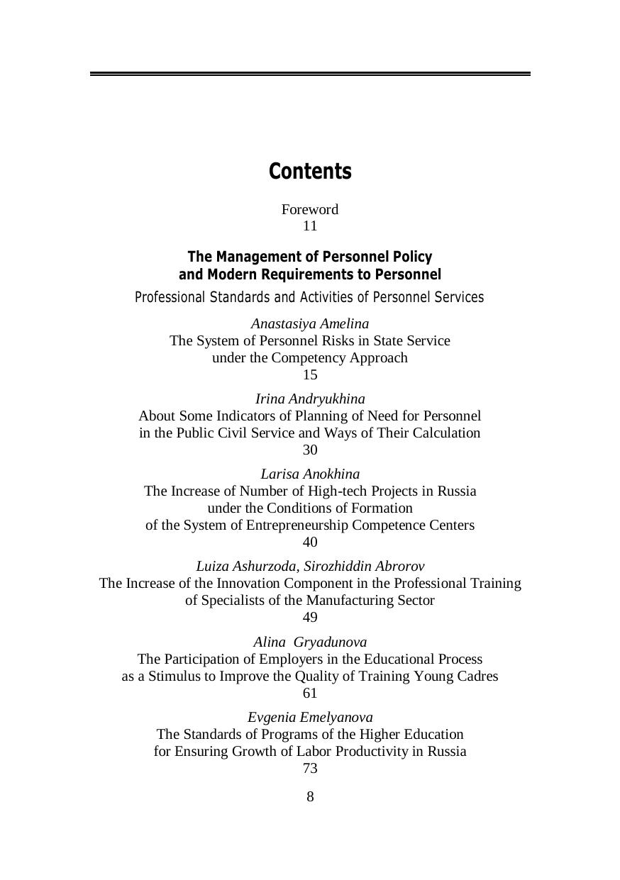 Сборник содержит материалы Межрегиональной научно-практической конференции «Управление кадровой политикой и современные требования к персоналу: профессиональные стандарты и деятельность кадровых служб» (Калуга, 18—19 апреля 2019 года), организованной Региональным объединением работодателей «Союз промышленников и предпринимателей Калужской области» и Калужским филиалом федерального государственного бюджетного образовательного учреждения высшего образования «Российская академия народного хозяйства и государственной службы при Президенте Российской Федерации». В ходе конференции состояло сь практически значимое обсуждение актуальных проблем формирования кадровой политики организаций в современных условиях, применения профессиональных стандартов в деятельности кадровых служб и сфере образования, вопросов охраны труда и безопасности на производстве; участники обменялись опытом работы в рассматриваемой сфере. Издание адресовано руководителям органов государственной власти и местного самоуправления, учреждений высшего и среднего профессионального образования, работникам кадровых служб предприятий, специалистам и экспертам в области управления человеческими ресурсами, студентам, магистрантам и аспирантам.