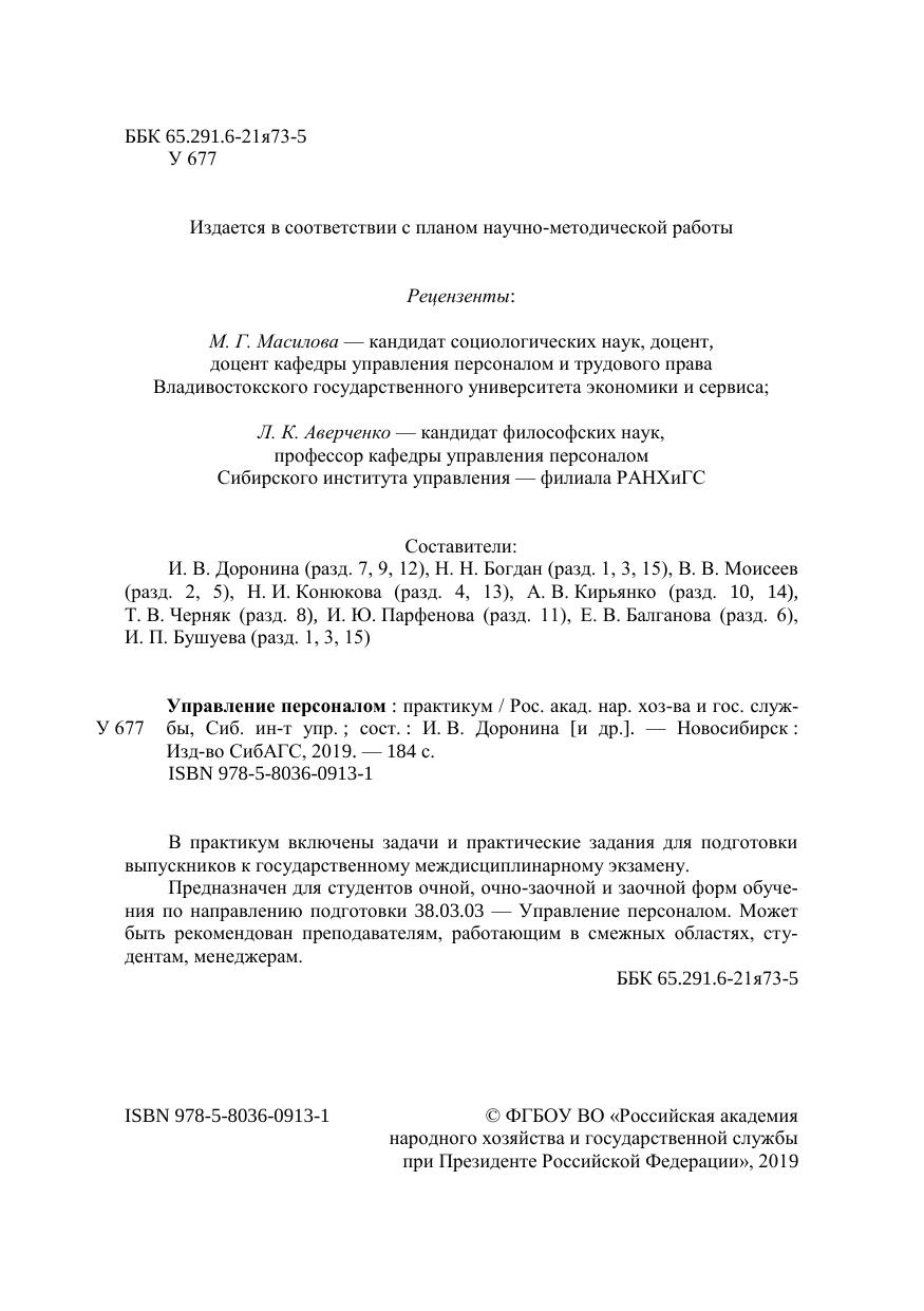 В практикум включены задачи и практические задания для подготовки выпускников к государственному междисциплинарному экзамену. Предназначен для студентов очной, очно-заочной и заочной форм обуче-ния по направлению подготовки 38.03.03 — Управление персоналом. Может быть рекомендован преподавателям, работающим в смежных областях, сту-дентам, менеджерам.