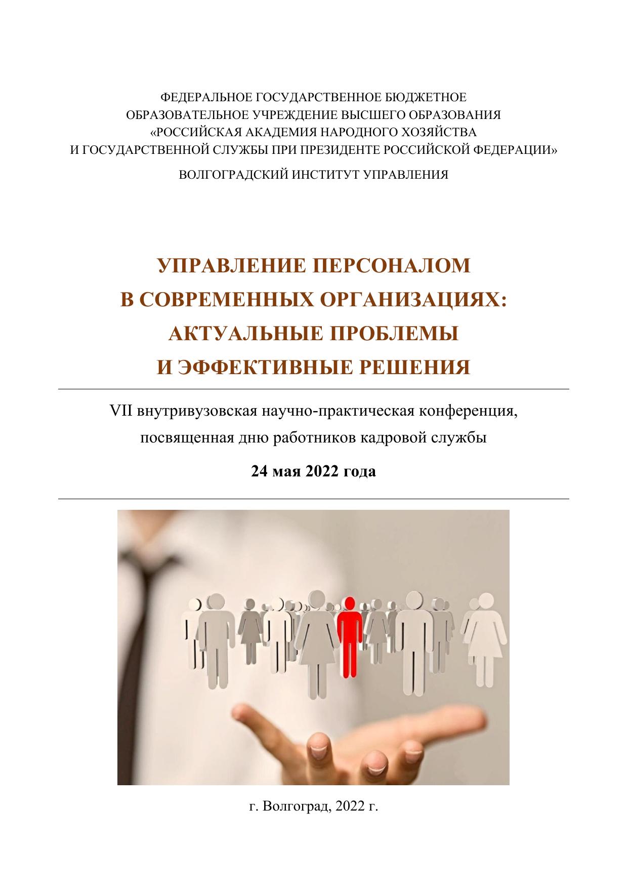 Управление персоналом в современных организациях: актуальные проблемы и эффективные решения: VII внутривузовская научно-практическая конференция, посвященная дню работника кадровой службы (24 мая 2022 года)