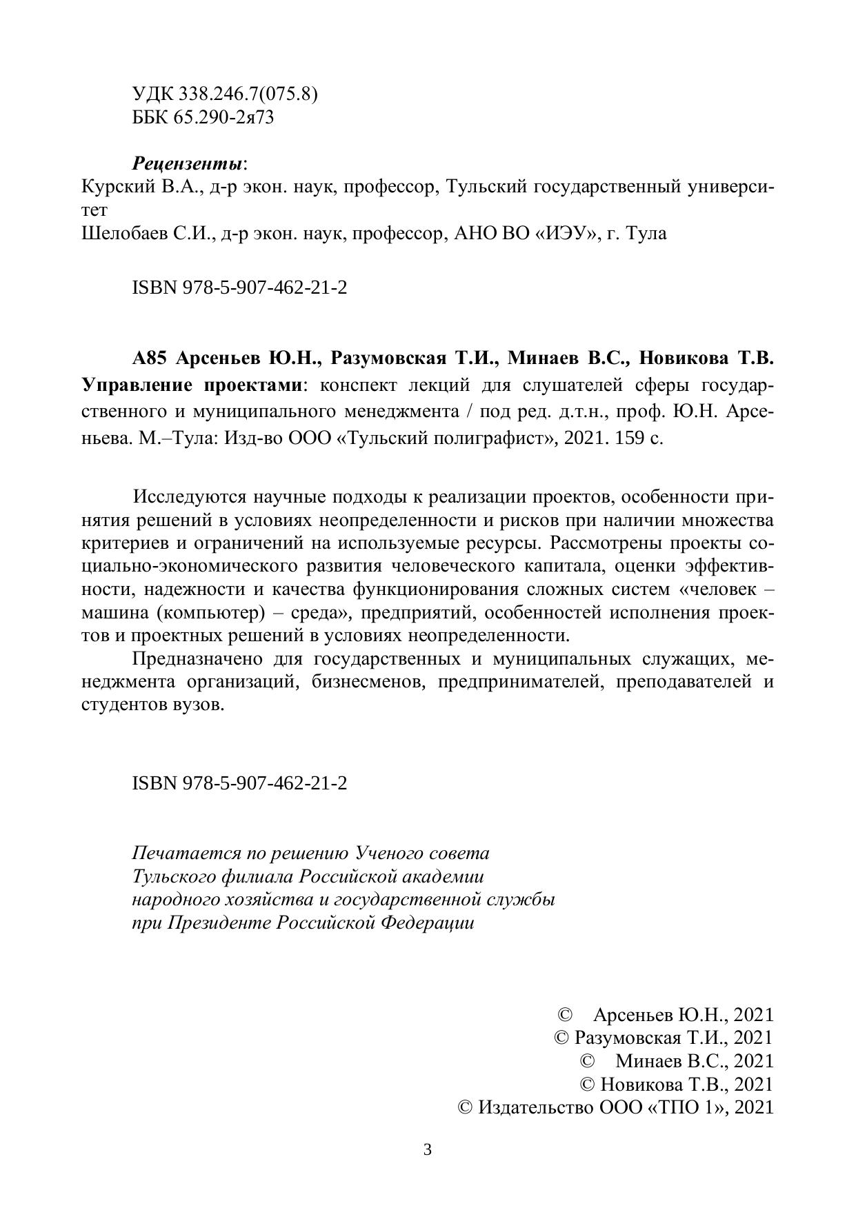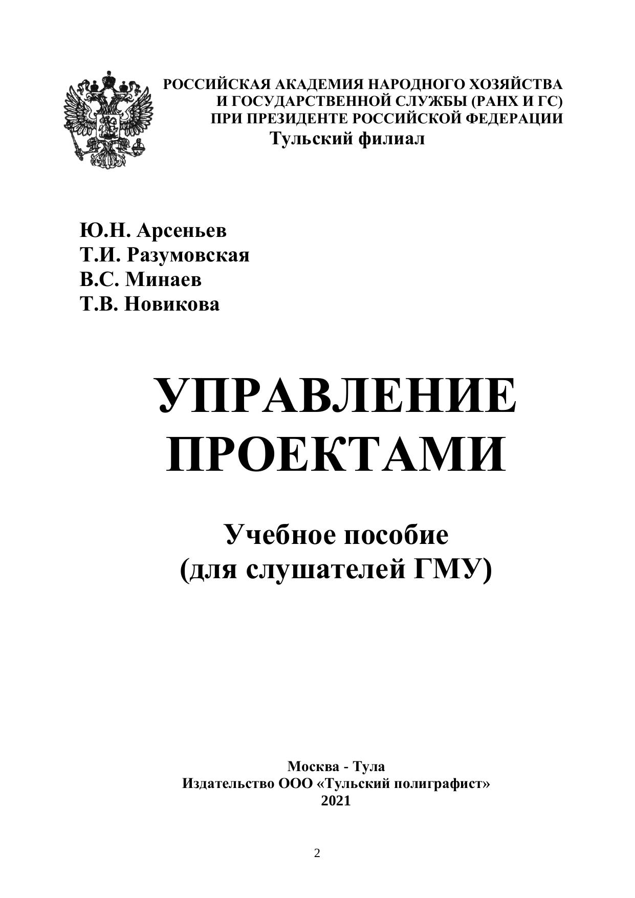 Управление проектами: конспект лекций для слушателей сферы государственного и муниципального менеджмента