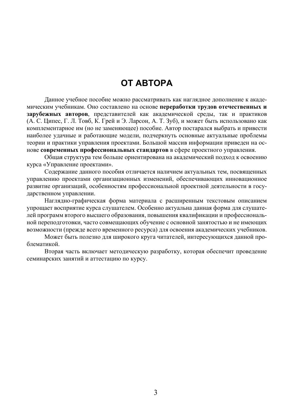 Издание включает конспект лекций и методический комплекс преподавателя с описанием практических заданий для самостоятельной работы, средств промежуточной и итоговой аттестации. Приведены рекомендуемая литература и дополнительные материалы справочного и методического характера. Помимо традиционных тем курса в пособие включены темы по управлению проектами организационных изменений и внедрению проектного управления в государственном секторе. Соответствует современным требованиям Федерального государственного образовательного стандарта среднего профессионального образования и профессиональным квалификационным требованиям. Издание будет полезно как студентам средних профессиональных учреждений, обучающимся по экономическим и управленческим направлениям подготовки, так и преподавателям.