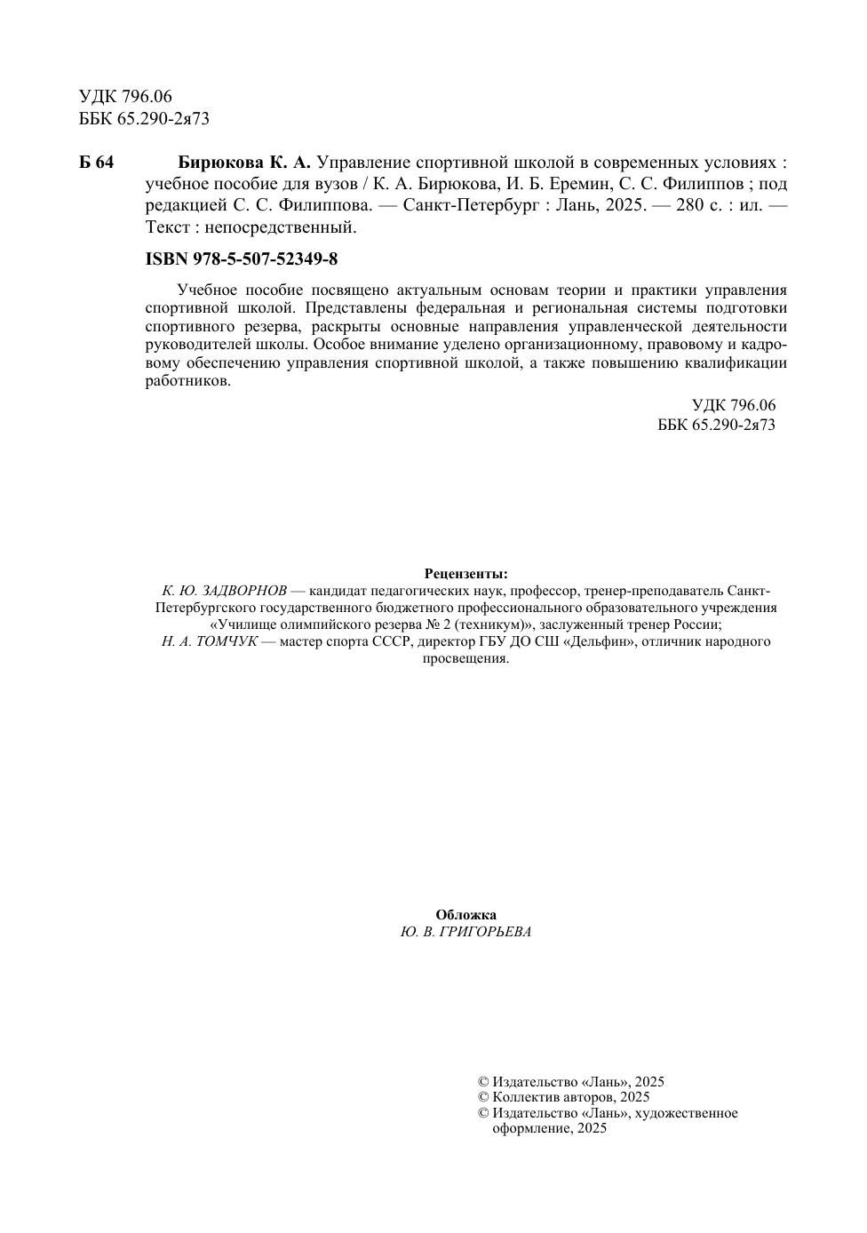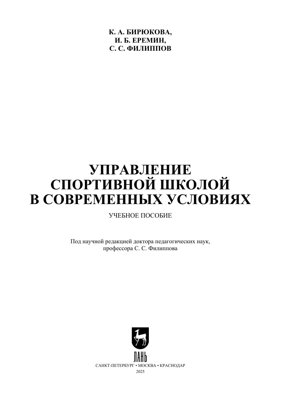 Учебное пособие посвящено актуальным основам теории и практики управления спортивной школой. Представлены федеральная и региональная системы подготовки спортивного резерва, раскрыты основные направления управленческой деятельности руководителей школы. Особое внимание уделено организационному, правовому и кадровому обеспечению управления спортивной школой, а также повышению квалификации работников.