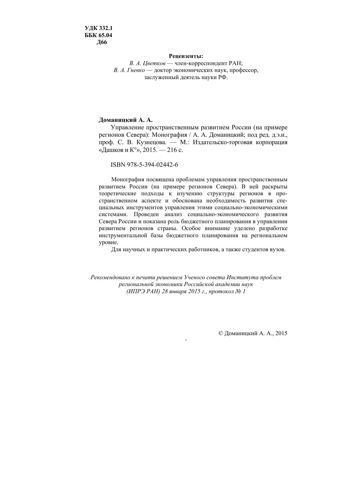 Монография посвящена проблемам управления пространственным развитием России (на примере регионов Севера). В ней раскрыты теоретические подходы к изучению структуры регионов в пространственном аспекте и обоснована необходимость развития специальных инструментов управления этими социально-экономическими системами. Проведен анализ социально-экономического развития Севера России и показана роль бюджетного планирования в управлении развитием регионов страны. Особое внимание уделено разработке инструментальной базы бюджетного планирования на региональном уровне. Для научных и практических работников, а также студентов вузов.