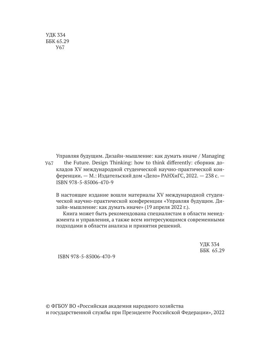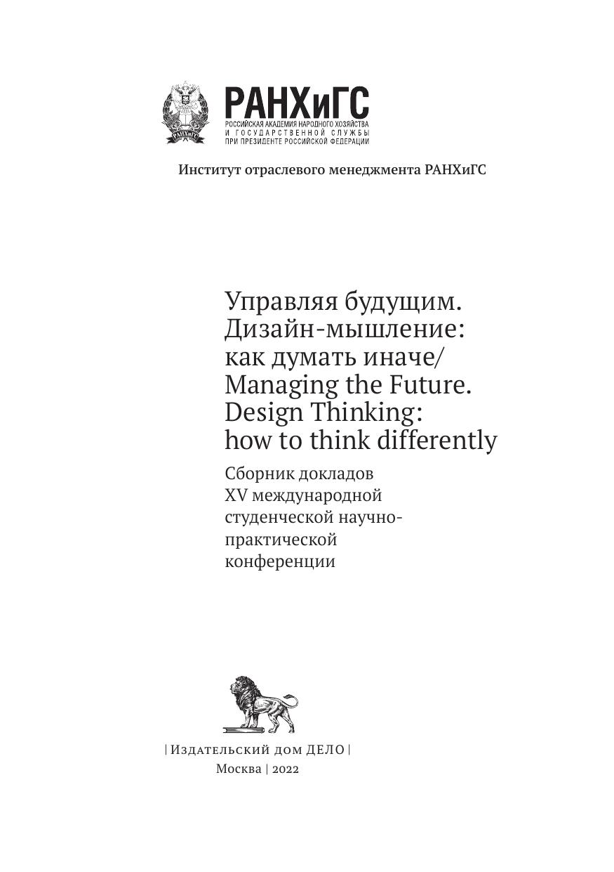 В настоящее издание вошли материалы XV международной студенческой научно-практической конференции «Управляя будущим. Дизайн-мышление: как думать иначе» (19 апреля 2022 г.).