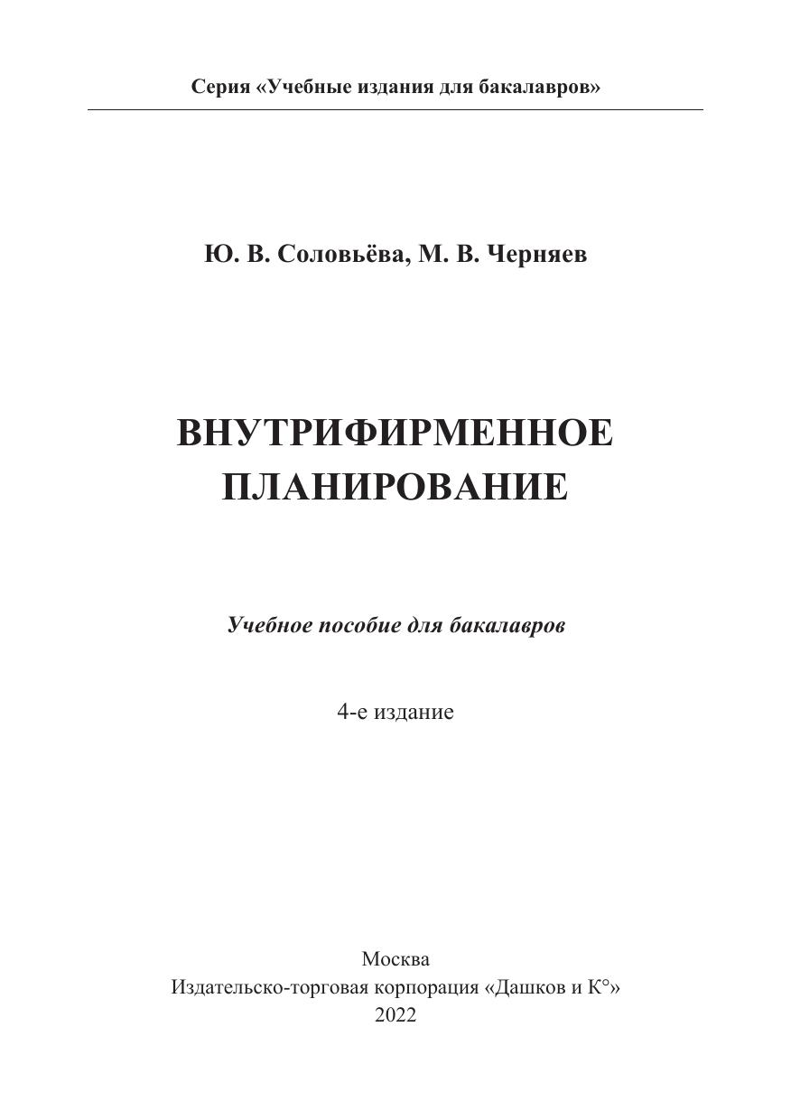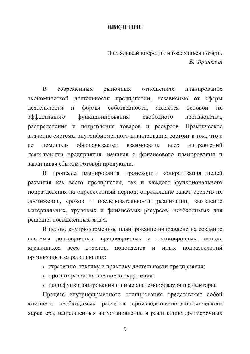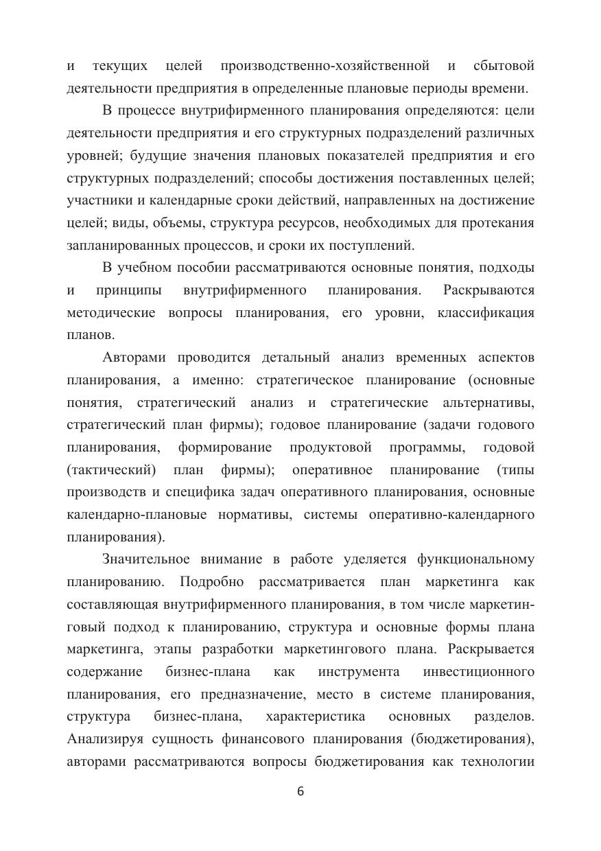 В учебном пособии раскрываются основные понятия и подходы внутрифирменного планирования, анализируются методические вопросы планирования, особенности формирования стратегических, тактических и оперативных планов. Рассматриваются как теоретические, так и практические аспекты функционального планирования на предприятии, а именно: структура, основные формы и этапы разработки маркетингового плана, сущность и характеристика бизнес-плана и его составляющих, бюджетирование как технология планирования и управления. Для студентов бакалавриата, обучающихся по направлениям подготовки «Экономика» и «Менеджмент», научно-педагогических работников, аспирантов, а также специалистов, занятых в сфере внутрифирменного планирования и управления.