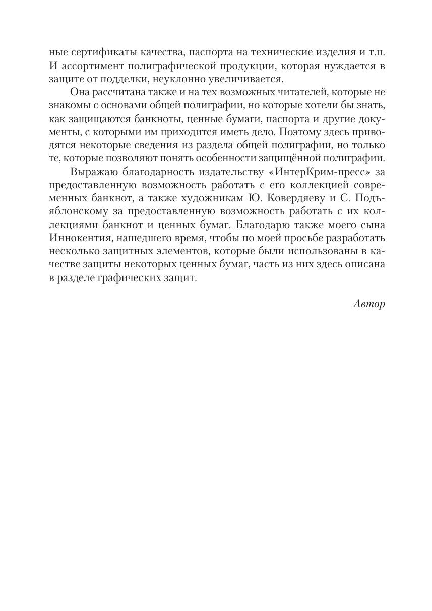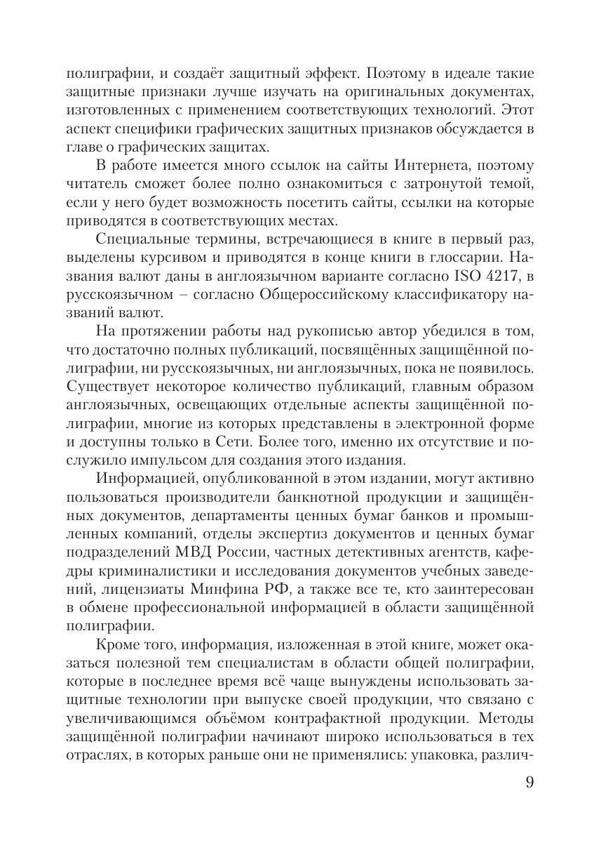 документов и ценных бумаг подразделений МВД России, частных детективных агентств, кафедры криминалистики и исследования документов учебных заведений, лицензиаты Минфина РФ, а также все те, кто заинтересован в обмене профессиональной информацией в области защищённой полиграфии. Она рассчитана также и на тех возможных читателей, которые хотели бы знать, как защищаются банкноты, ценные бумаги,
