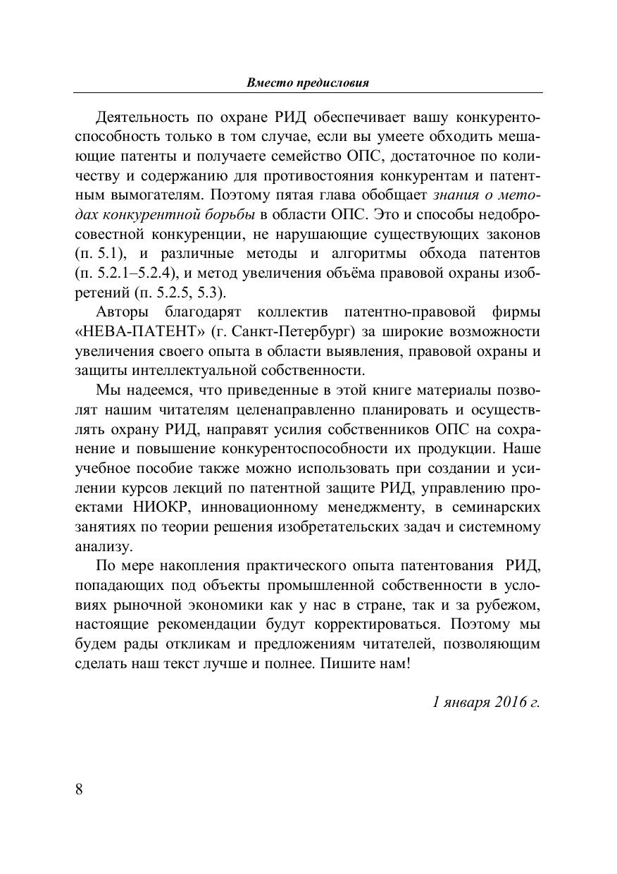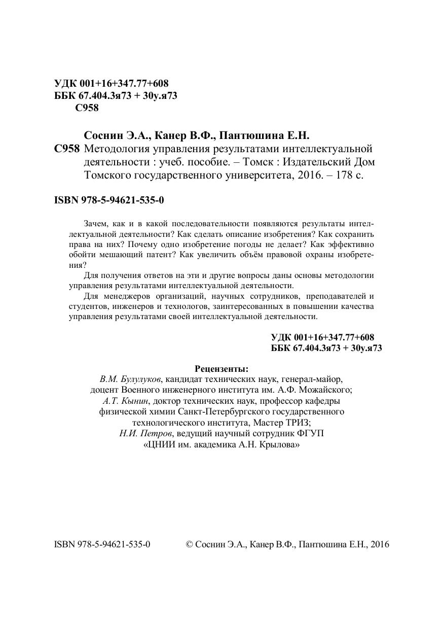 Зачем, как и в какой последовательности появляются результаты интеллектуальной деятельности? Как сделать описание изобретения? Как сохранить права на них? Почему одно изобретение погоды не делает? Как эффективно обойти мешающий патент? Как увеличить объём правовой охраны изобретения? Для получения ответов на эти и другие вопросы даны основы методологии управления результатами интеллектуальной деятельности. Для менеджеров организаций, научных сотрудников, преподавателей и студентов, инженеров и технологов, заинтересованных в повышении качества управления результатами своей интеллектуальной деятельности.