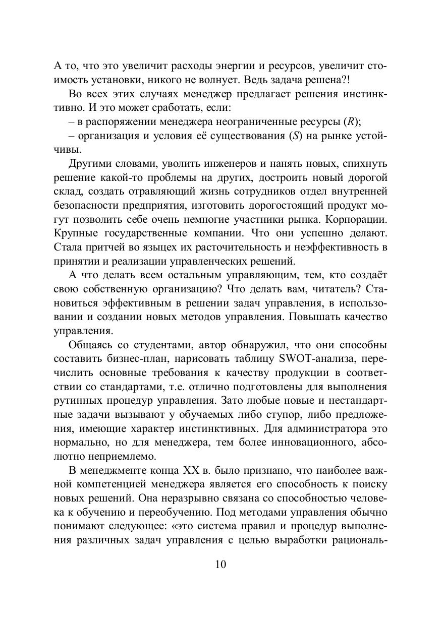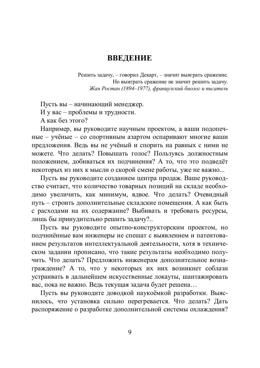 Управление – это целенаправленное воздействие на объекты и процессы. Управленческое решение, начинаясь на уровне стратегии, с необходимостью распадается на решение конкретных тактических задач: научных, инженерных и социальных. Поэтому навык решения задач для менеджера является одним из самых важных. Поскольку все целенаправленные системы деятельности развиваются по одинаковым законам, изучать методы управления ими можно с единых позиций. Курс лекций основан на правилах анализа, синтеза и развития целенаправленных систем деятельности (Альтшуллер Г.С., 1973, Злотин Б.Л., 1989, Корогодин В.И., 1991, Соснин Э.А., Пойзнер Б.Н., 2000–2015) и собственном опыте автора в управлении проектами. Приводятся рекомендации, позволяющие оптимизировать и мотивировать деятельность менеджера-практика на различных этапах развития его системы деятельности. Принципы и методы управления системами раскрыты на десятках примеров, обобщающих данные более чем двухсот литературных источников (менеджмент, общая теория систем, экономика, история, социология, науковедение, психология и т.д.). С учётом современного уровня научных знаний внесены коррективы в аппарат теории решения изобретательских задач (ТРИЗ). Сделаны замечания о применимости тех или иных инструментов ТРИЗ при решении социальных задач. Предложена система стандартов на решение социальных противоречий (версия 2015 года). Показана значимость решения психологических задач в управлении развитием системы. Для менеджеров организаций, научных сотрудников, преподавателей, магистрантов и аспирантов, заинтересованных в повышении качества управления своими проектами.