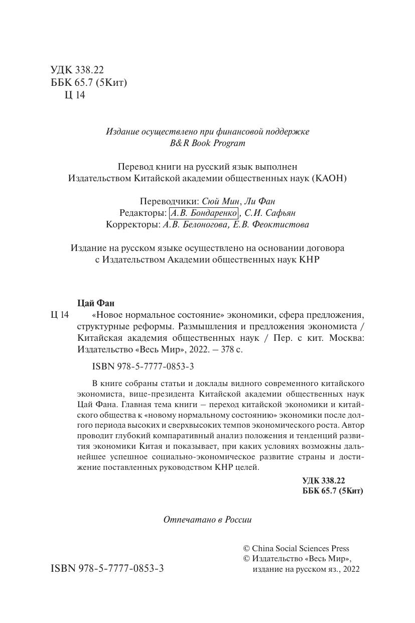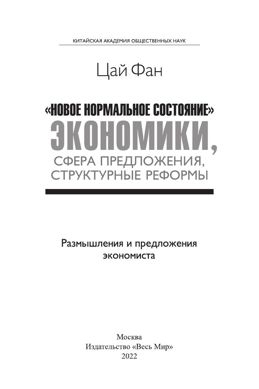 В книге собраны статьи и доклады видного современного китайского экономиста, вице-президента Китайской академии общественных наук Цай Фана. Главная тема книги – переход китайской экономики и китайского общества к «новому нормальному состоянию» экономики после долгого периода высоких и сверхвысоких темпов экономического роста. Автор проводит глубокий компаративный анализ положения и тенденций развития экономики Китая и показывает, при каких условиях возможны дальнейшее успешное социально-экономическое развитие страны и достижение поставленных руко водством КНР целей.