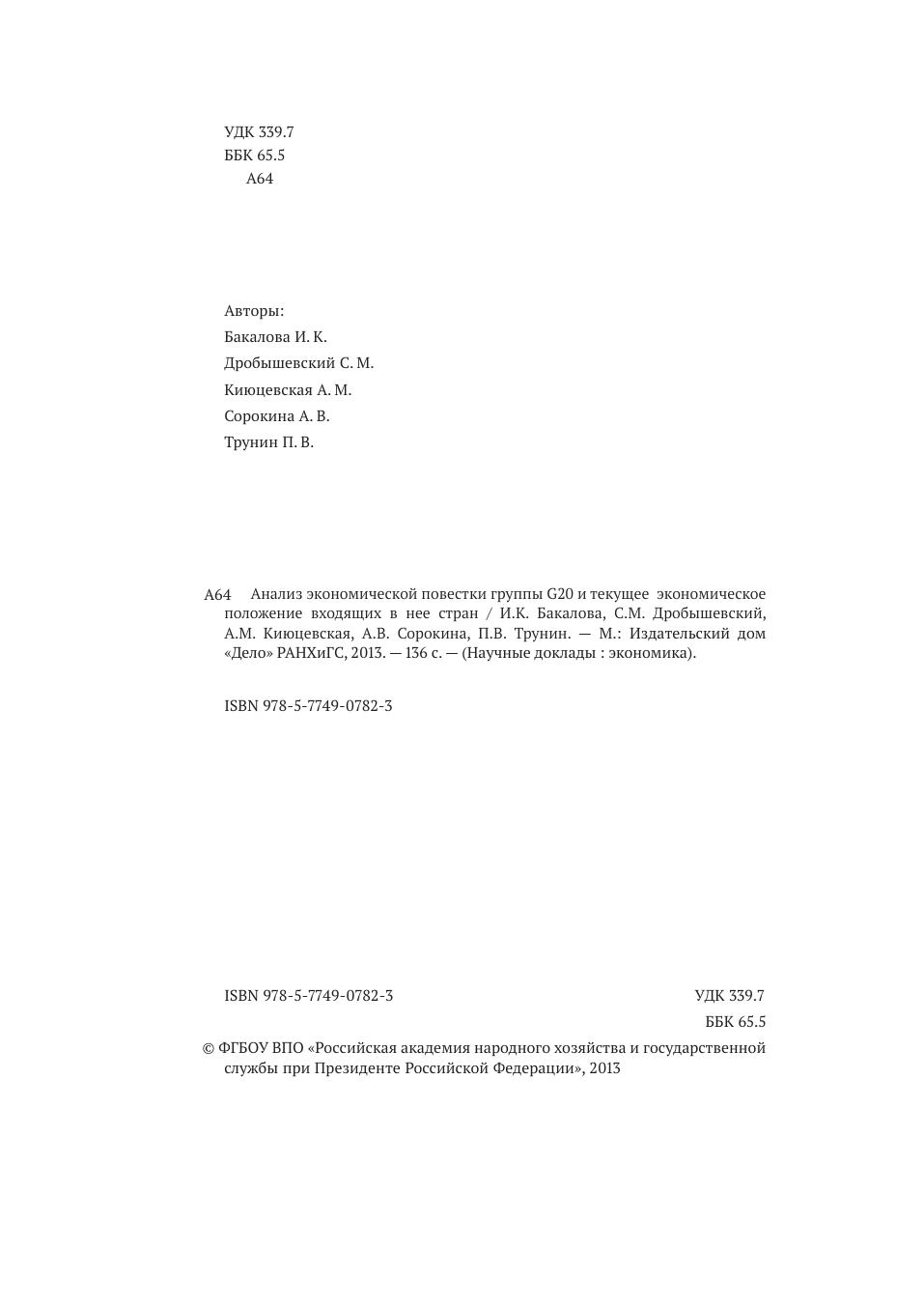 Анализ экономической повестки группы G20 и текущее экономическое положение входящих в нее стран