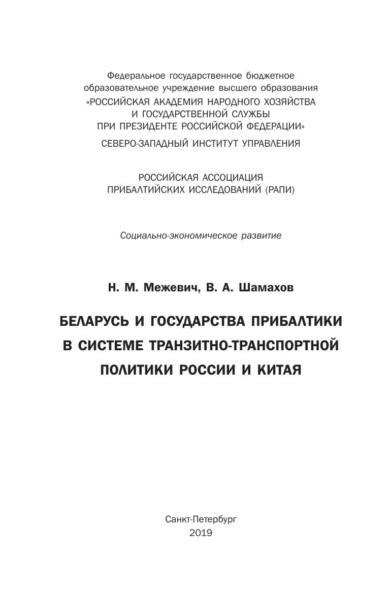 Беларусь и государства Прибалтики в системе транспортной политики России и Китая: научный доклад