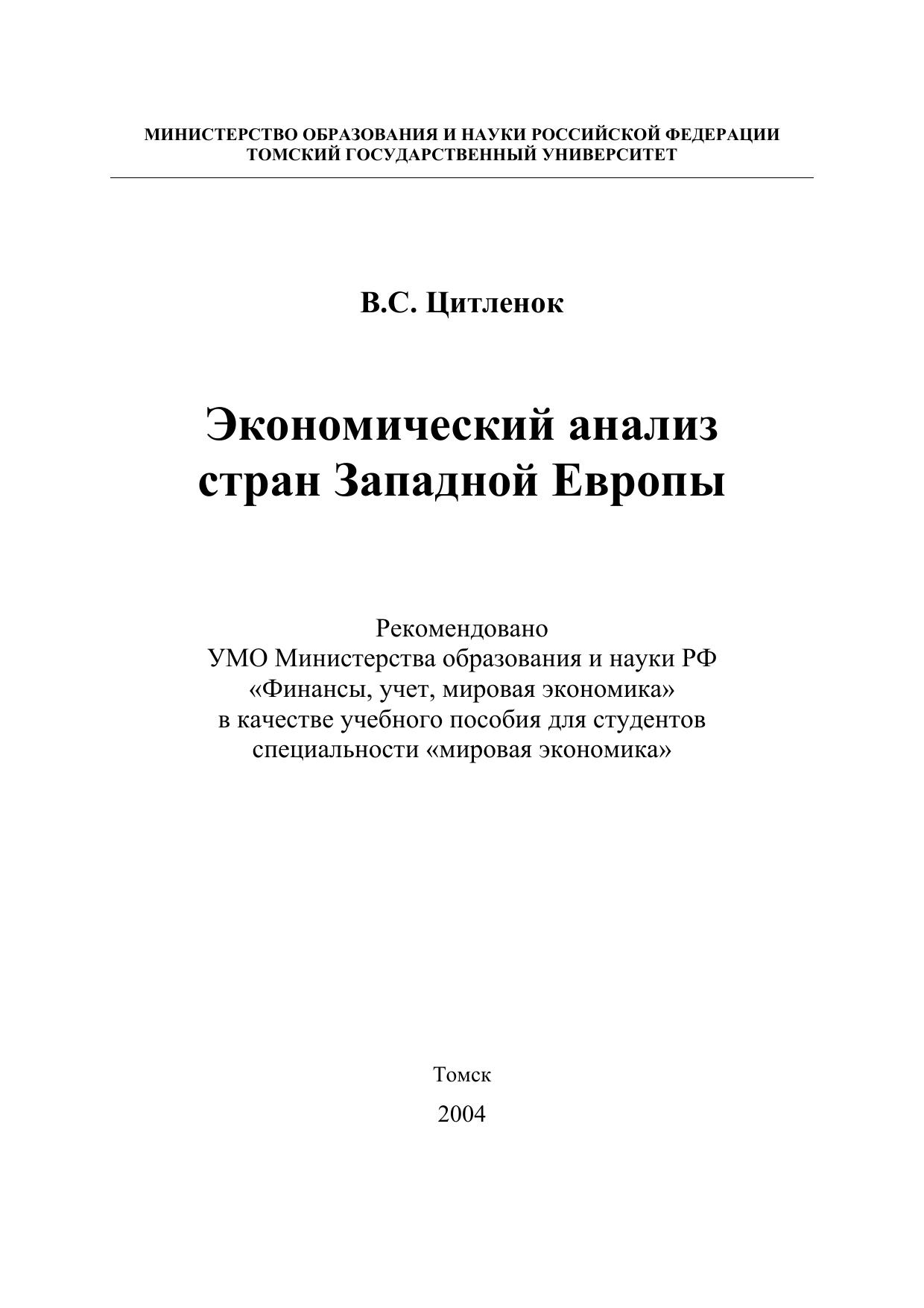 Экономический анализ стран Западной Европы