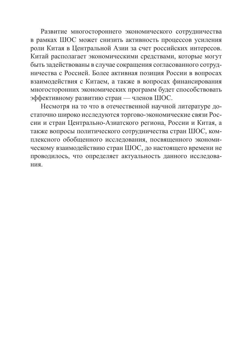 В монографии рассматриваются тенденции развития торгово-экономического сотрудничества в рамках ШОС, которые определяют эффективность экономической интеграции России и стран — членов Шанхайской организации сотрудничества в регионе Центральной Азии. В работе классифицированы этапы развития Шанхайской организации сотрудничества и перспективы ее трансформации в многопрофильную региональную структуру; определена организационная структура многостороннего экономического сотрудничества в рам ках ШОС; выявлены основные проблемы развития многостороннего экономического сотрудничества стран — членов ШОС; систематизированы перспективные направления регионального экономического сотрудничества РФ и стран Центрально-Азиатского региона в рамках ШОС; выявлена специфика российско-китайского сотрудничества в рамках ШОС. Книга предназначена для студентов и преподавателей экономических факультетов вузов, специалистов в вопросах интеграции постсоветского пространства.