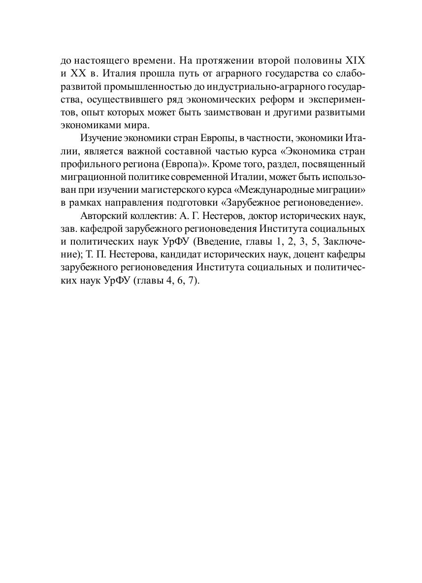 В учебном пособии рассматриваются особенности экономического развития и экономической политики Италии в начале XXI века. В книге анализируется природно-ресурсный потенциал Италии, дается представление об основных отраслях экономики Италии, их трансформации на рубеже ХХ–XXI веков, о влиянии миграционных процессов на экономическое развитие современной Италии. Отдельные разделы работы посвящены основным концепциям развития экономики Италии на современном этапе и российско-итальянским отношениям в экономической сфере. Для студентов бакалавриата, обучающихся по направлению подготовки «Зарубежное регионоведение» и специализирующихся в рамках профиля «Европейские исследования» по странам Средиземноморской Европы.