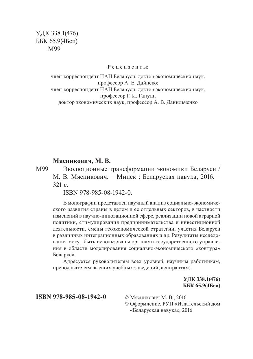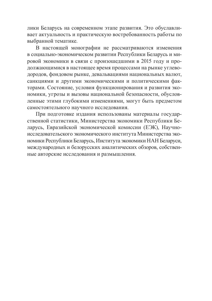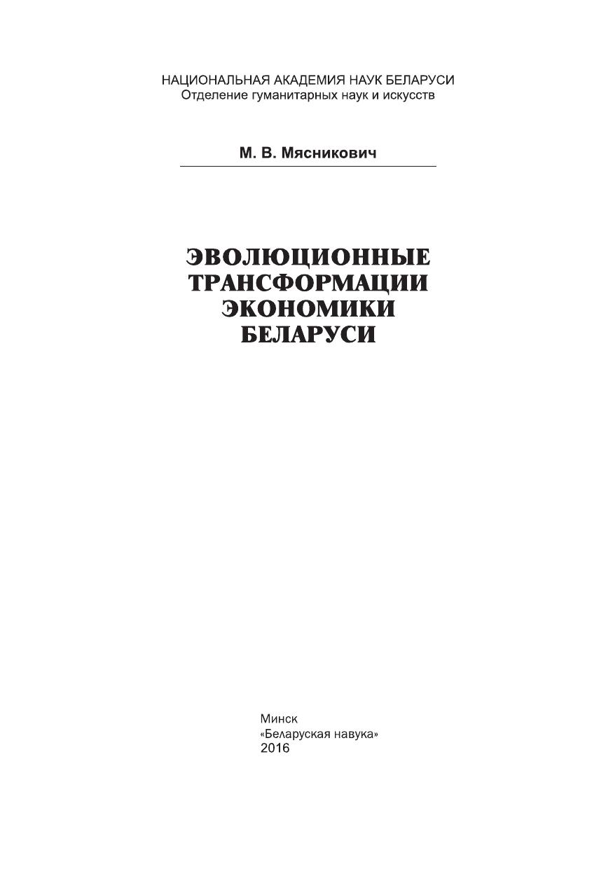 В монографии представлен научный анализ социально-экономического развития страны в целом и ее отдельных секторов, в частности изменений в научно-инновационной сфере, реализации новой аграрной политики, стимулирования предпринимательства и инвестиционной деятельности, смены геоэкономической стратегии, участия Беларуси в различных интеграционных образованиях и др. Результаты исследования могут быть использованы органами государственного управления в области моделирования социально-экономического «контура» Беларуси. Адресуется руководителям всех уровней, научным работникам, преподавателям высших учебных заведений, аспирантам.