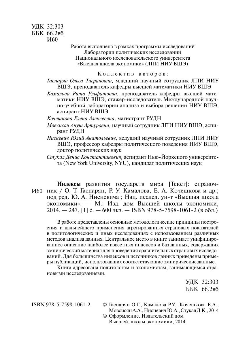 В работе представлены основные методологические принципы построения и дальнейшего применения агрегированных страновых показателей в политологических и иных исследованиях с использованием различных методов анализа данных. Центральное место в книге занимает унифицированное описание наиболее известных индексов и баз данных, содержащих эмпирический материал для проведения сравнительных страновых исследований. Для большинства индексов и источников данных приведены примеры публикаций, использовавших соответствующие эмпирические данные. Книга адресована политологам и экономистам, занимающимся страновыми исследованиями.
