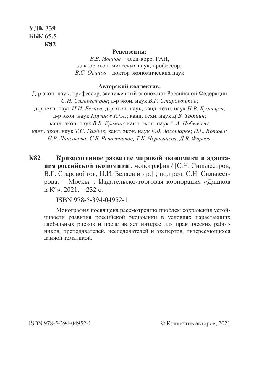 Кризисогенное развитие мировой экономики и адаптация российской экономики