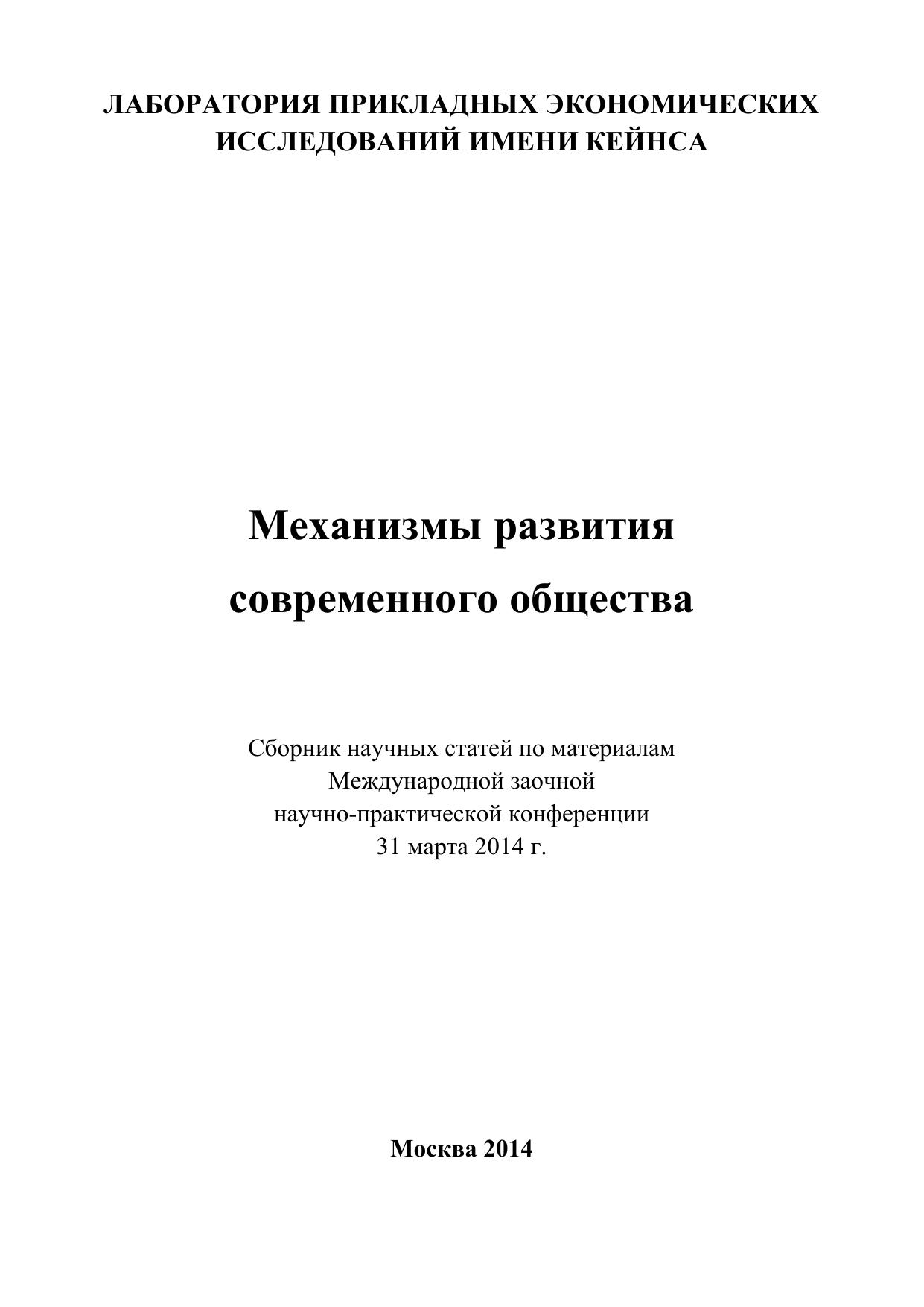 Общественное развитие зиждется на совокупности культурных, экономических, политических и иных факторов. Необходимо четко представлять себе наиболее перспективные и эффективные механизмы, способствующие повлиять на устойчивый рост благосостояния населения. На конференции «Механизмы развития современного общества» (31 марта 2014 г.) данная тематика рассматривалась с разных точек зрения. Несомненный интерес для исследователей представляет диапазон научных интересов участников конференции. Сборник предназначен для научных работников, студентов и преподавателей высших учебных заведений, руководителей коммерческих предприятий. Может использоваться в качестве дополнительного учебного пособия в процессе обучения магистрантов и аспирантов по соответствующим направлениям.