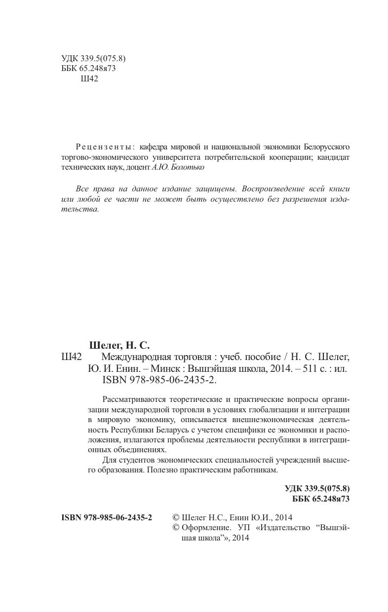 Рассматриваются теоретические и практические вопросы организации международной торговли в современных условиях глобализации и интеграции Республики Беларусь в мировую экономику. Особое внимание уделено вопросам внешнеэкономической деятельности республики с учетом специфики ее экономики и географического расположения в центре Европы, а также проблемы вхождения страны в региональные интеграционные объединения. Для студентов экономических специальностей вузов.