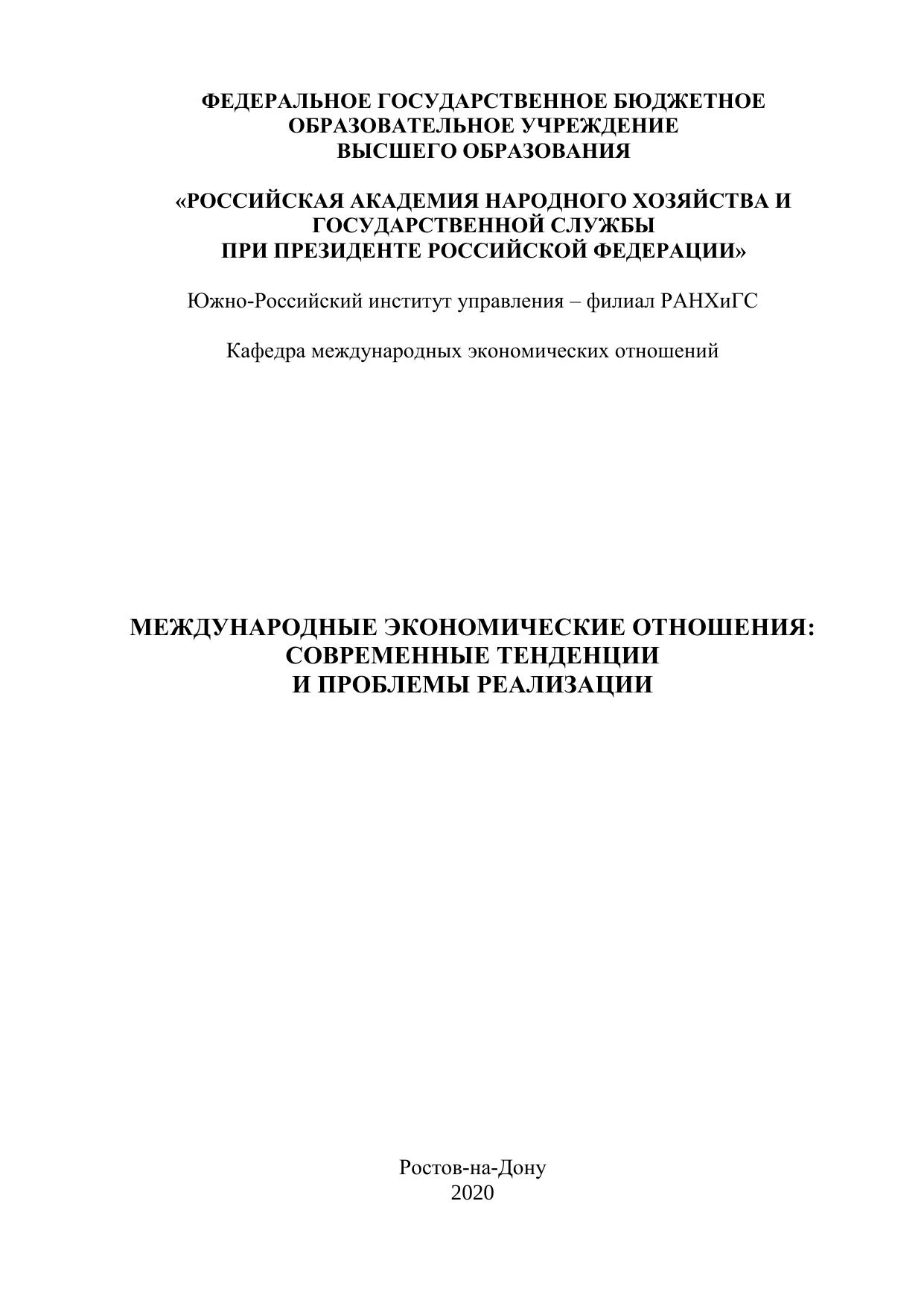 Международные экономические отношения: современные тенденции и проблемы реализации