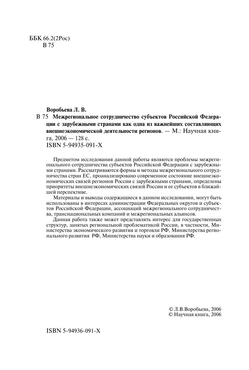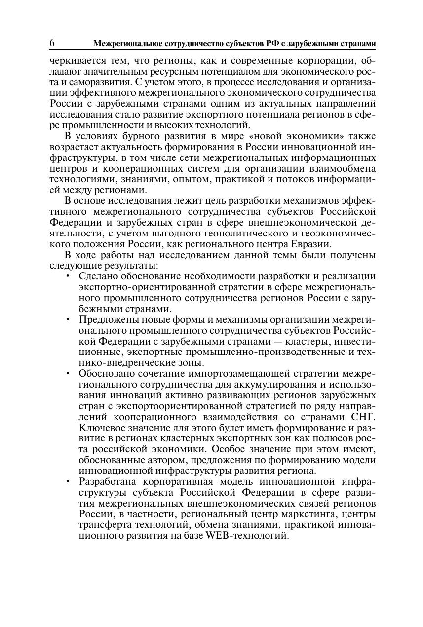 Предметом исследования данной работы являются проблемы межрегионального сотрудничества субъектов Российской Федерации с зарубежными странами. Рассматриваются формы и методы межрегионального сотрудничества стран ЕС, проанализировано современное состояние внешнеэко-номических связей регионов России с зарубежными странами, определены приоритеты внешнеэкономических связей России и ее субъектов в ближайшей перспективе. Материалы и выводы содержащиеся в данном исследовании, могут быть использованы в интересах администрации Федеральных округов и субъектов Российской Федерации, ассоциаций межрегионального сотрудничества, транснациональных компаний и межрегиональных альянсов. Данная работа также может представлять интерес для государственных структур, занятых региональной проблематикой России, в частности, Министерства экономического развития и торговли РФ, Министерства регионального развития РФ, Министерства науки и образования РФ.