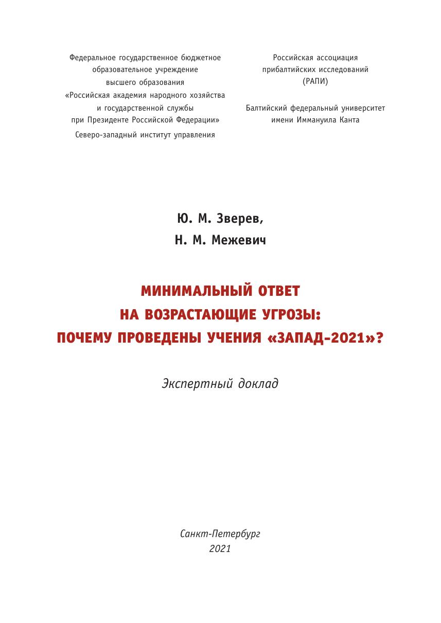 Минимальный ответ на возрастающие угрозы: почему проведены учения «Запад-2021»?: экспертный доклад