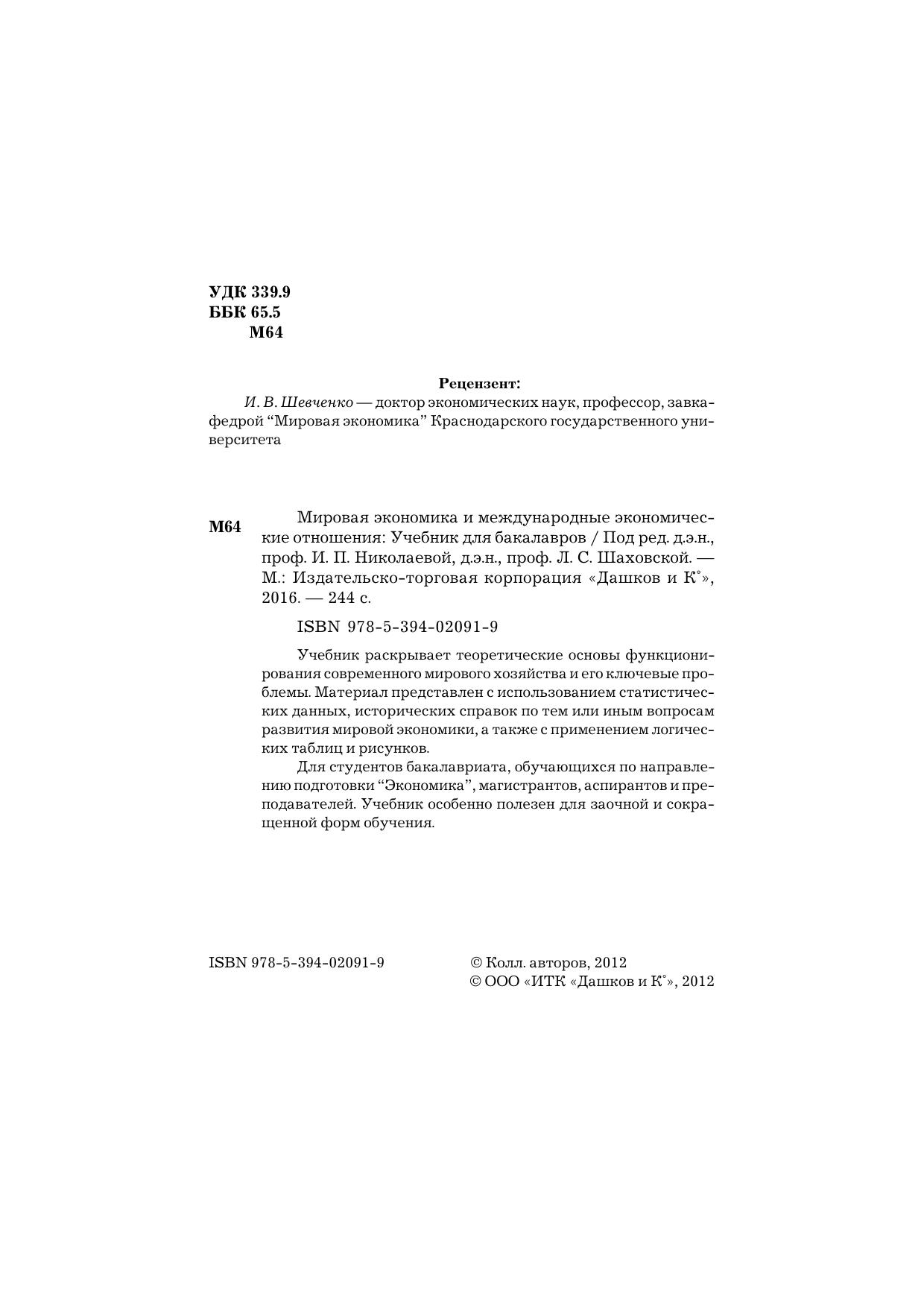 Учебник раскрывает теоретические основы функционирования современного мирового хозяйства и его ключевые проблемы. Материал представлен с использованием статистических данных, исторических справок по тем или иным вопросам развития мировой экономики, а также с применением логических таблиц и рисунков. Для студентов бакалавриата, обучающихся по направлению подготовки “Экономика”, магистрантов, аспирантов и преподавателей. Учебник особенно полезен для заочной и сокращенной форм обучения.