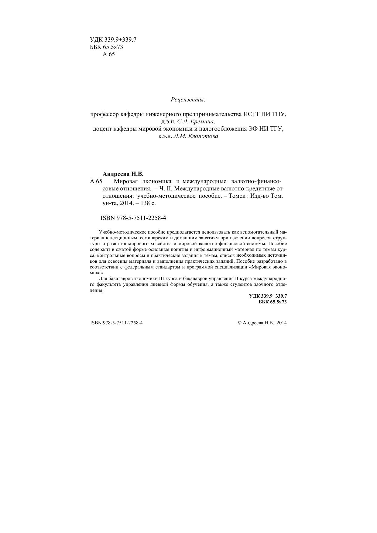 Мировая экономика и международные валютно-финансовые отношения. – Ч. II. Международные валютно-кредитные ототношения