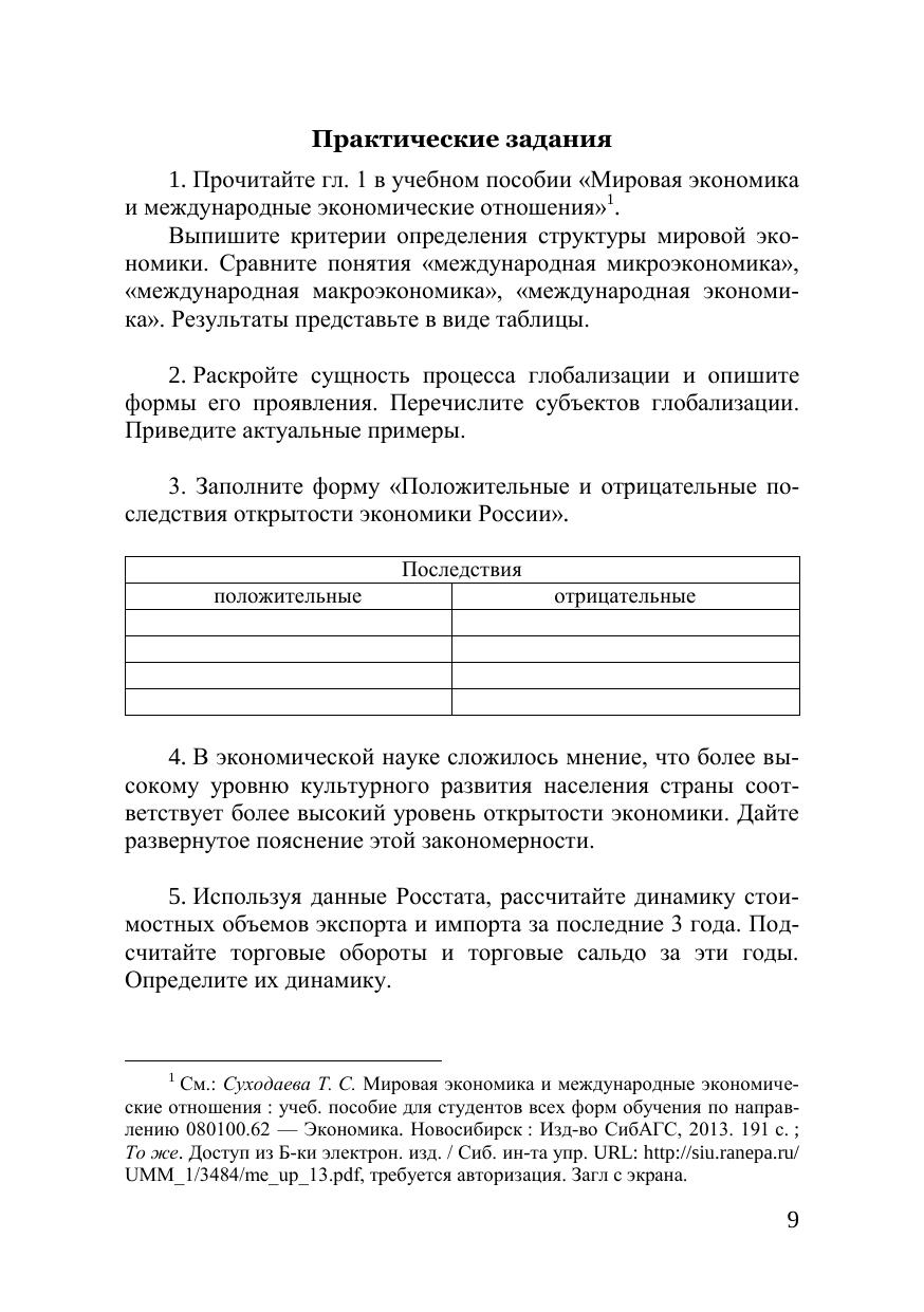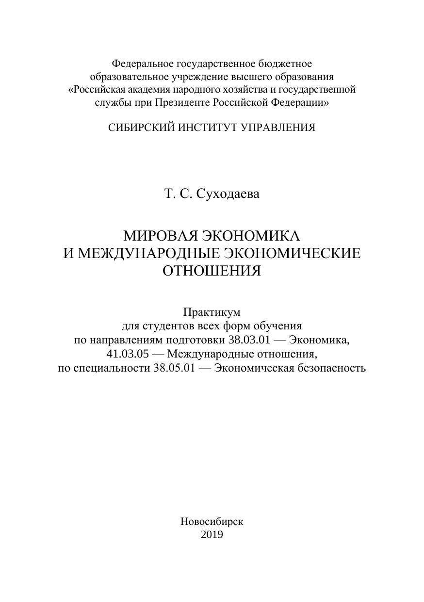 Практикум подготовлен для организации самостоятельной работы и под-готовки к практическим занятиям по дисциплине «Мировая экономика и меж-дународные экономические отношения». Предназначен для студентов всех форм обучения по направлениям под-готовки 38.03.01 — Экономика; 41.03.05 — Международные отношения; по специальности 38.05.01 — Экономическая безопасность.