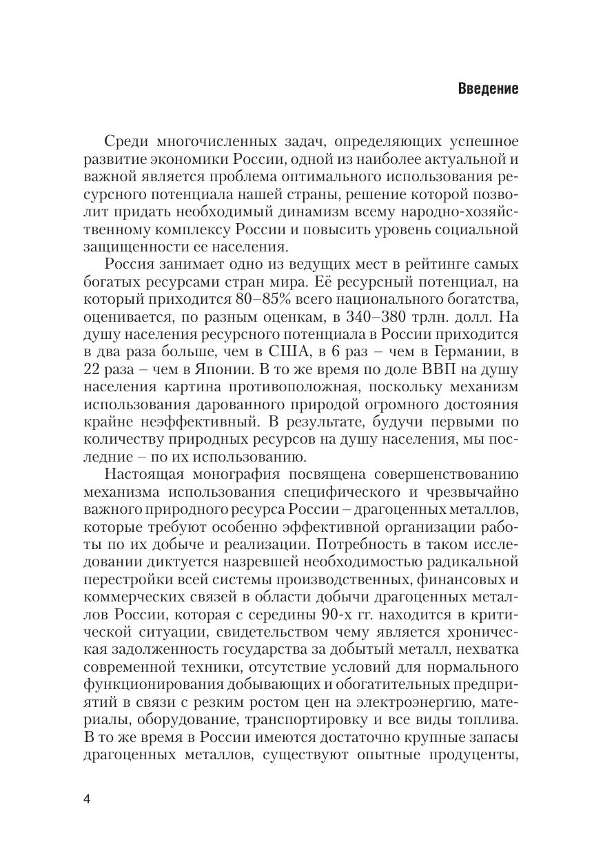Предлагаемая монография посвящена весьма актуальной и острой для сегодняшней России проблеме повышения эффективности взаимодействия российской золото-платиновой промышленности с мировым рынками драгоценных металлов. Рассматривается роль и место драгоценных металлов в экономике и мировой торговле, анализируется современное состояние мирового рынка драгоценных металлов, дана оценка состояния российской золотодобычи, определены основные направления мировой ювелирной промышленности. В целом приведенные в монографии материалы, их комплексный анализ могут представлять практический интерес не только для федеральных органов, но и для местных органов власти золото-, серебро- и платино-добывающих регионов России в процессе разработки ими программ и проектов добычи этих видов сырья и их реализации, а также материалы и выводы работы могут служить базовым материалом при подготовке специалистов, работающих с драгоценными металлами. Данное исследование может быть использовано при чтении спецкурсов по данному сектору мирового хозяйства.