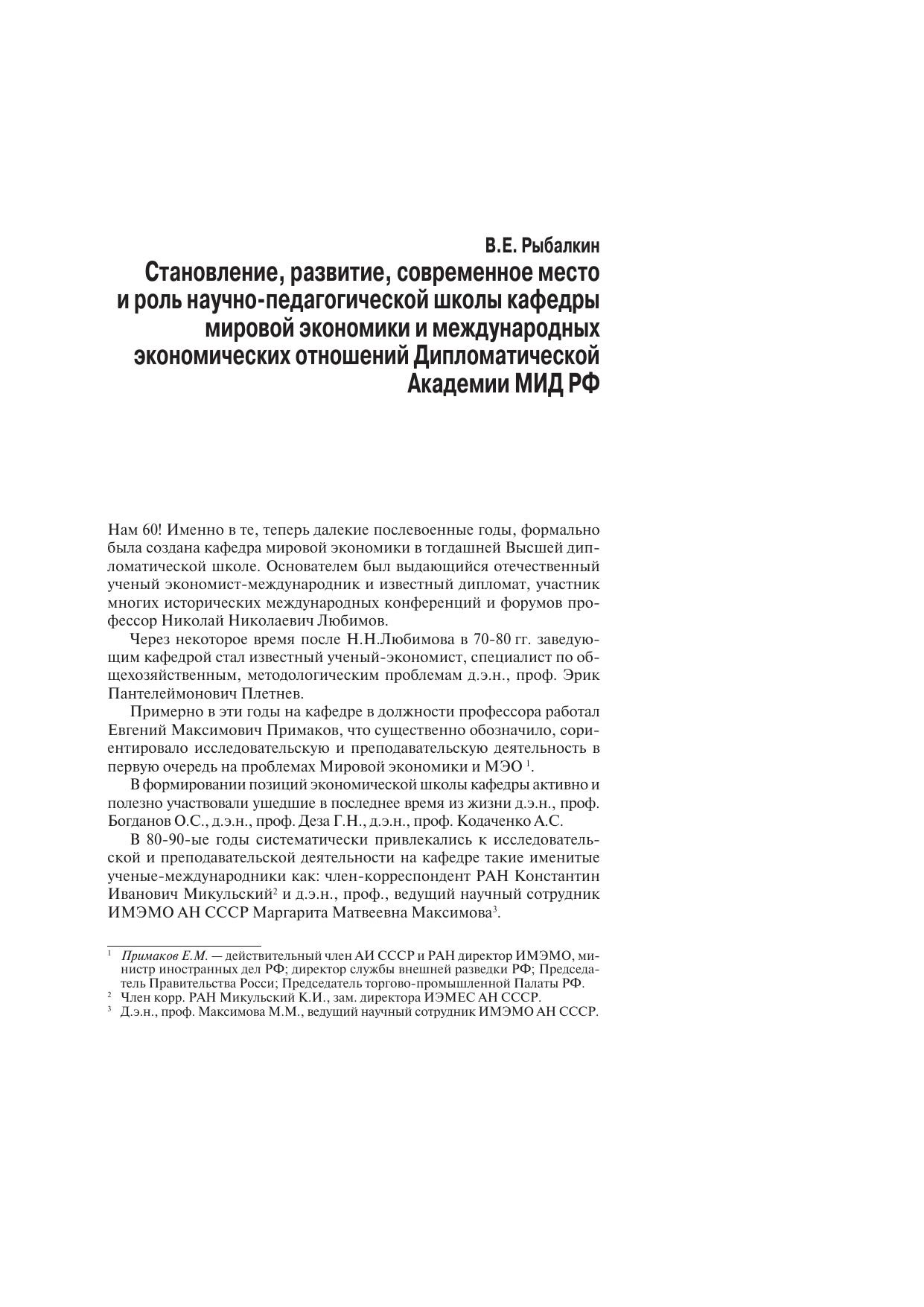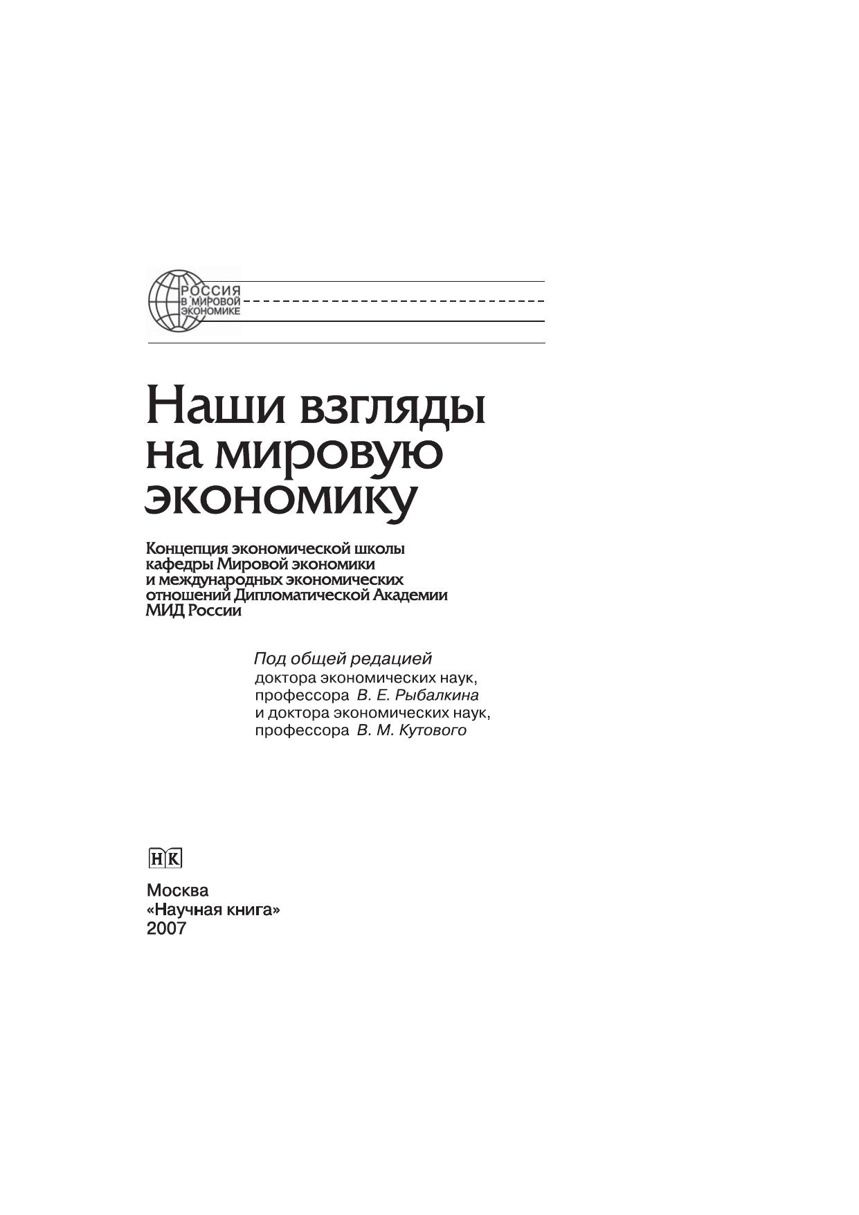 Наши взгляды на мировую экономику. Концепция экономической школы кафедры Мировой экономики и международных экономических отношений Дипломатической академии МИД России