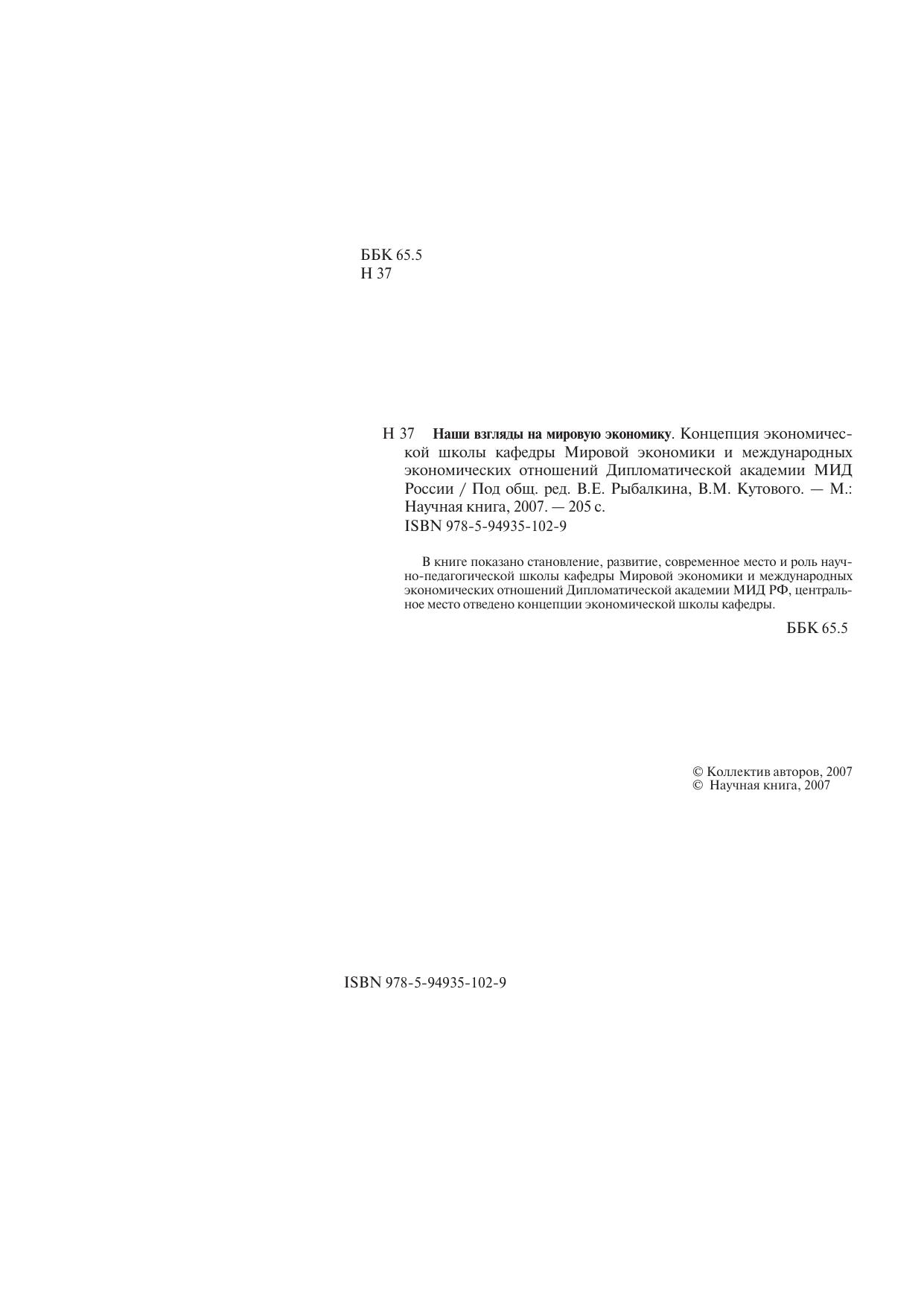 В книге показано становление, развитие, современное место и роль научно-педагогической школы кафедры Мировой экономики и международных экономических отношений Дипломатической академии МИД РФ, центральное место отведено концепции экономической школы кафедры.