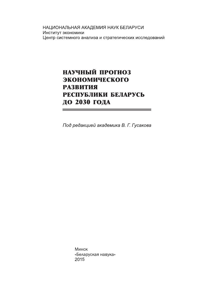 Научный прогноз экономического развития Республики Беларусь до 2030 года