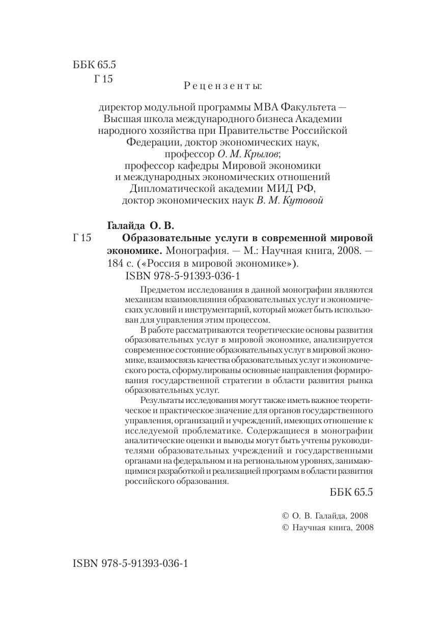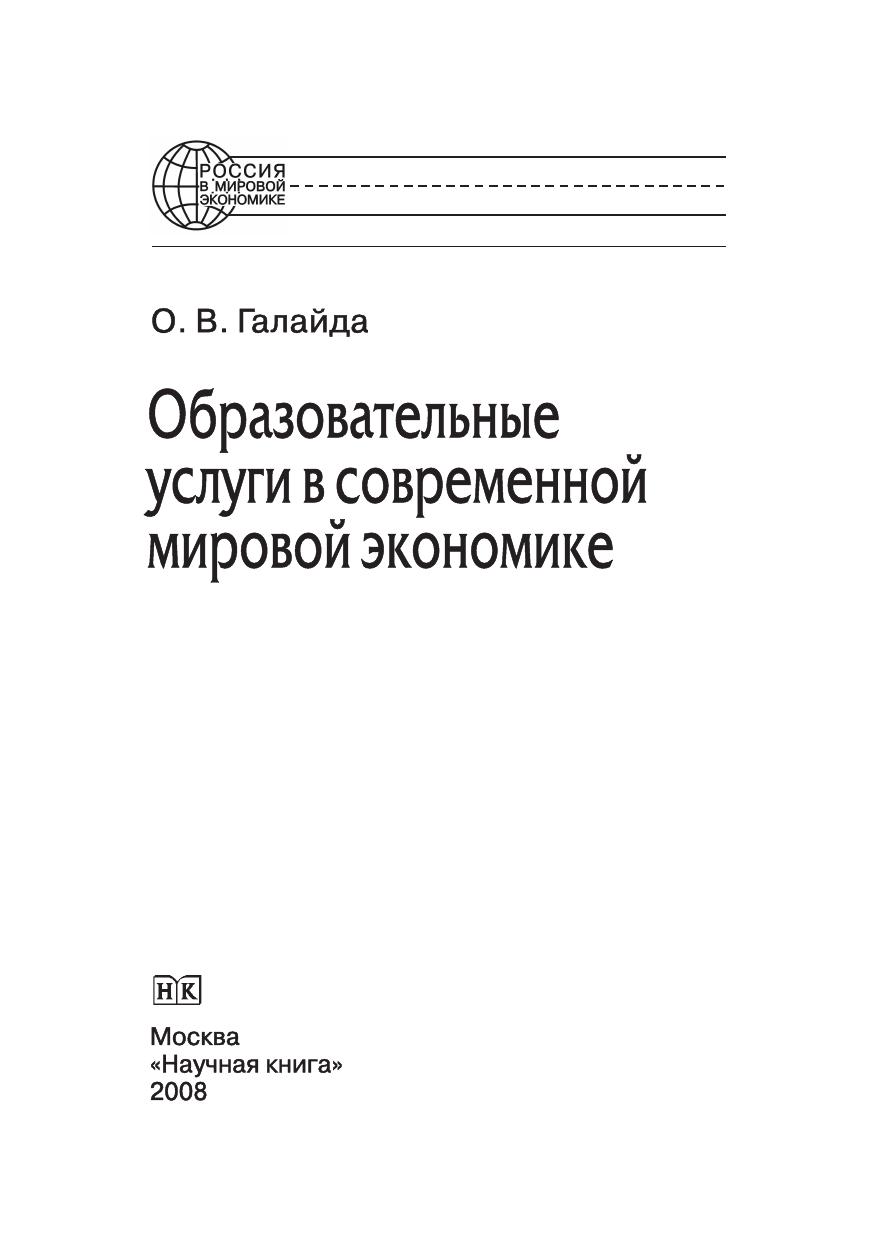 Образовательные услуги в современной мировой экономике. Монография