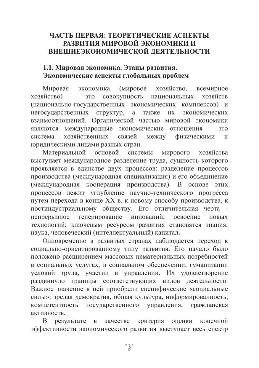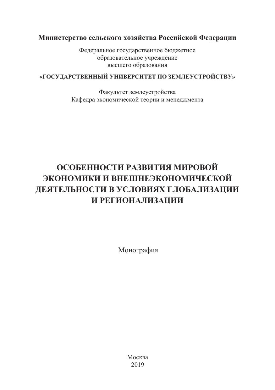 Особенности развития мировой экономики и внешнеэкономической деятельности в условиях глобализации и регионализации