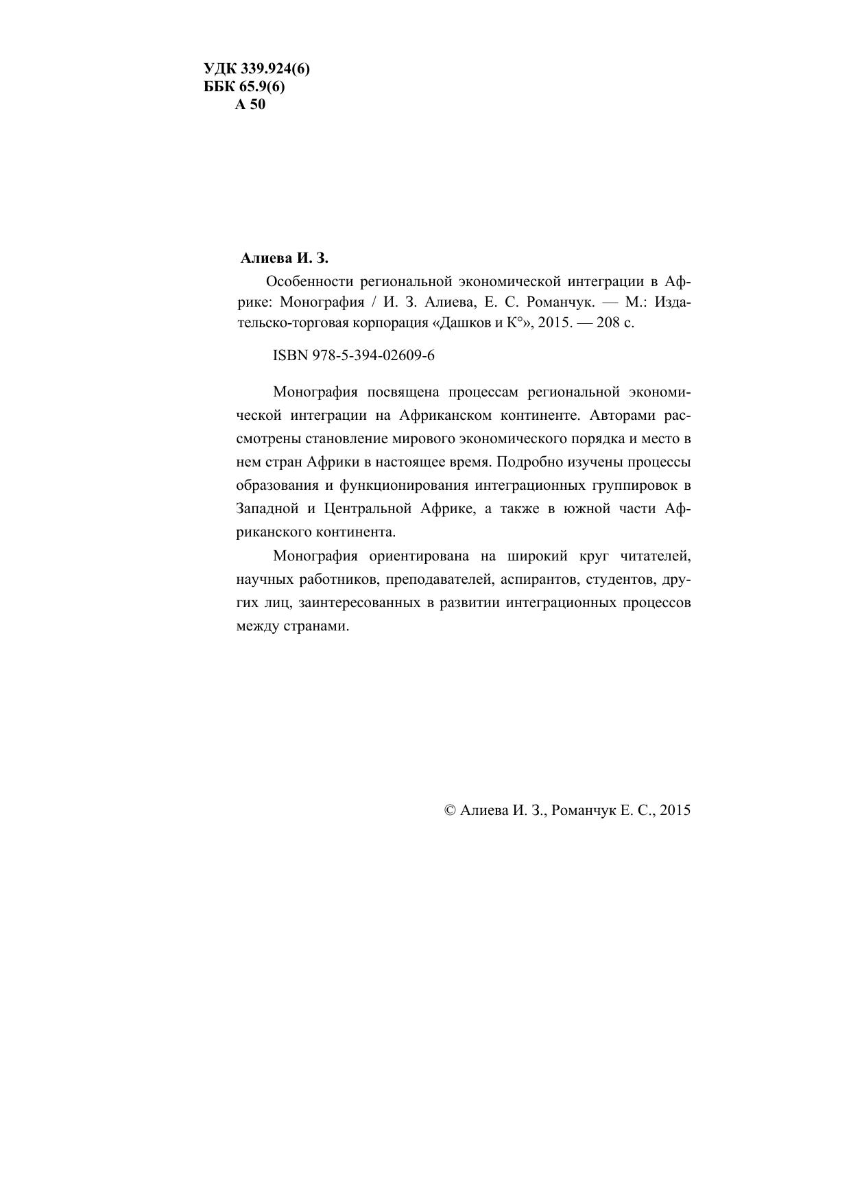 Монография посвящена процессам региональной экономической интеграции на Африканском континенте. Авторами рассмотрены становление мирового экономического порядка и место в нем стран Африки в настоящее время. Подробно изучены процессы образования и функционирования интеграционных группировок в Западной и Центральной Африке, а также в южной части Африканского континента. Монография ориентирована на широкий круг читателей, научных работников, преподавателей, аспирантов, студентов, других лиц, заинтересованных в развитии интеграционных процессов между странами.