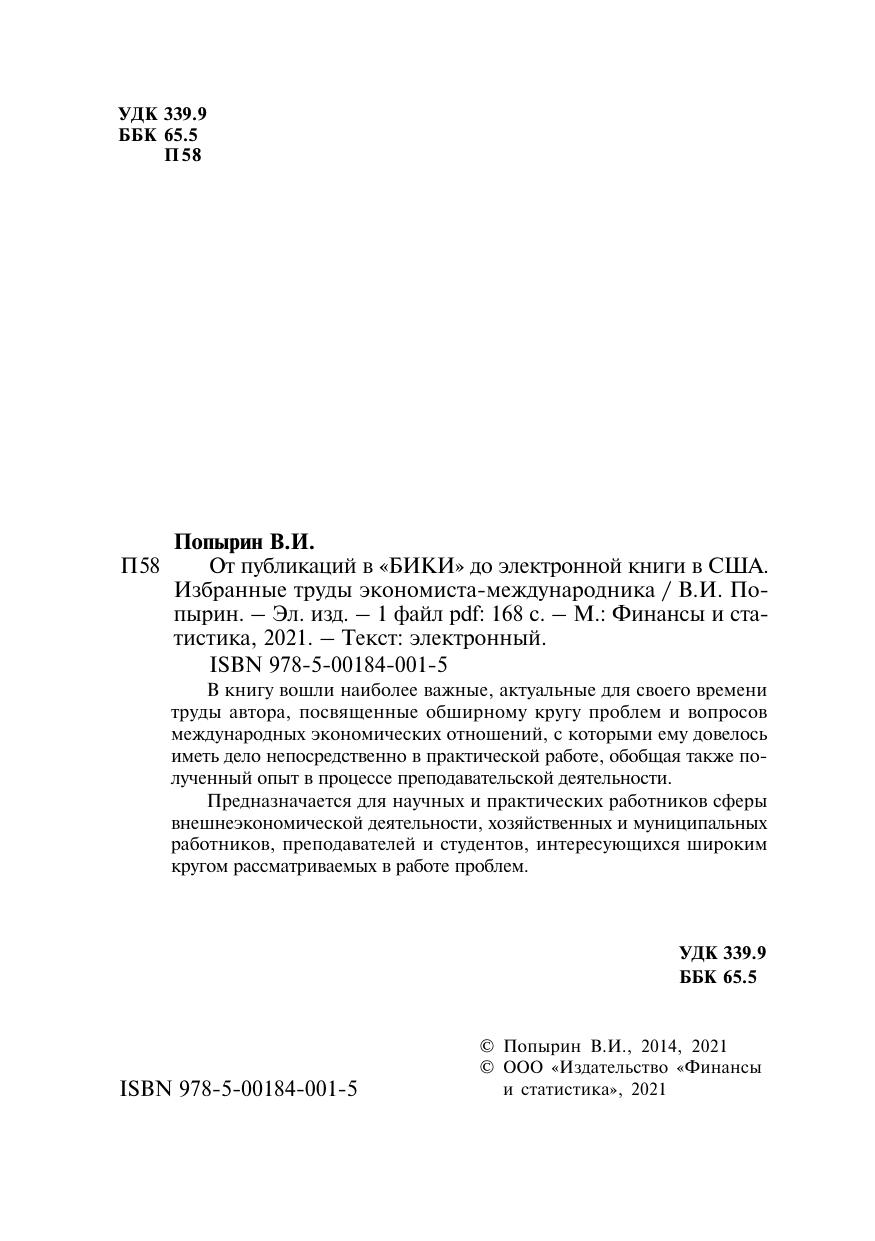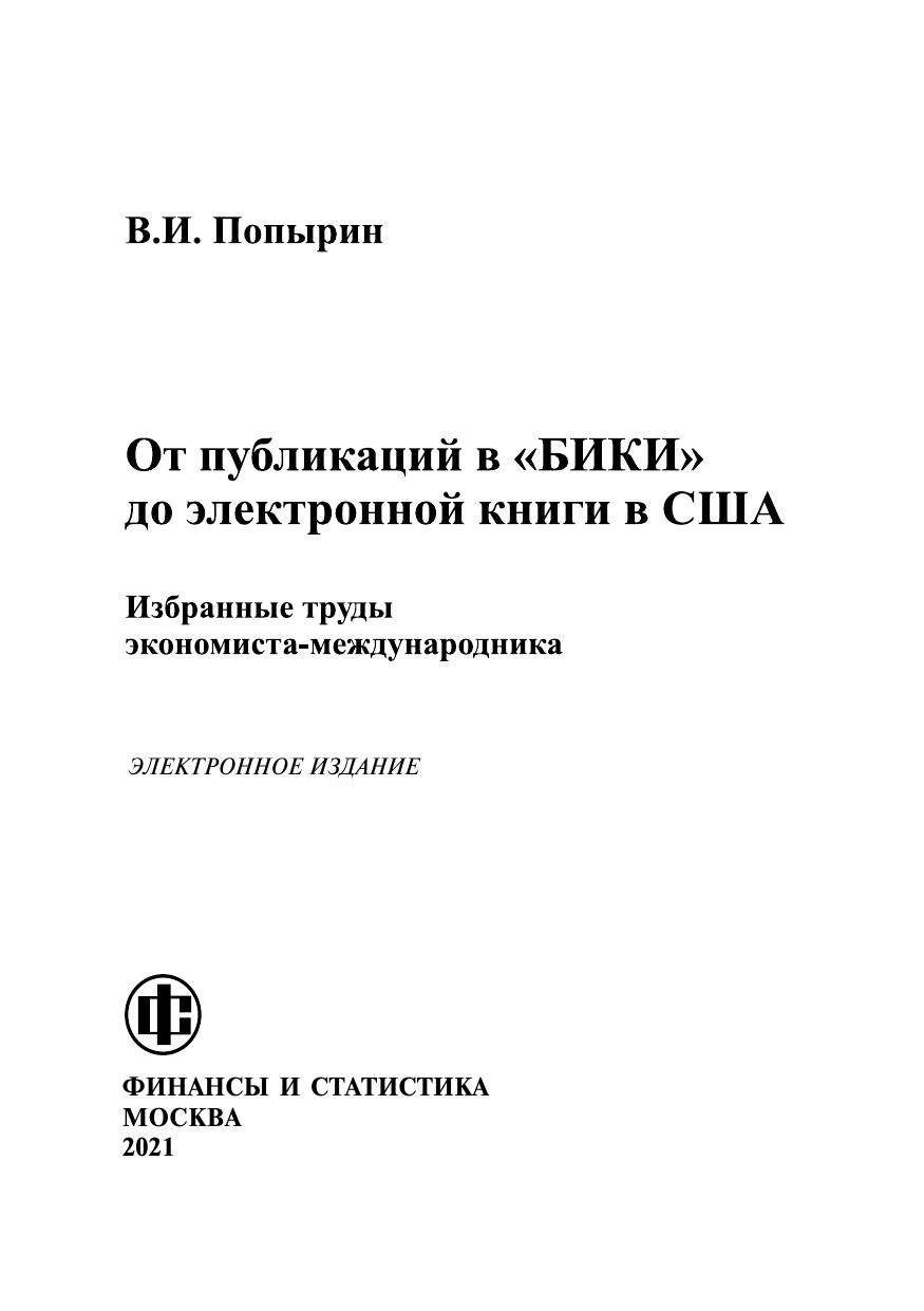 От публикаций в "БИКИ" до электронной книги в США. Избранные труды экономиста-международника