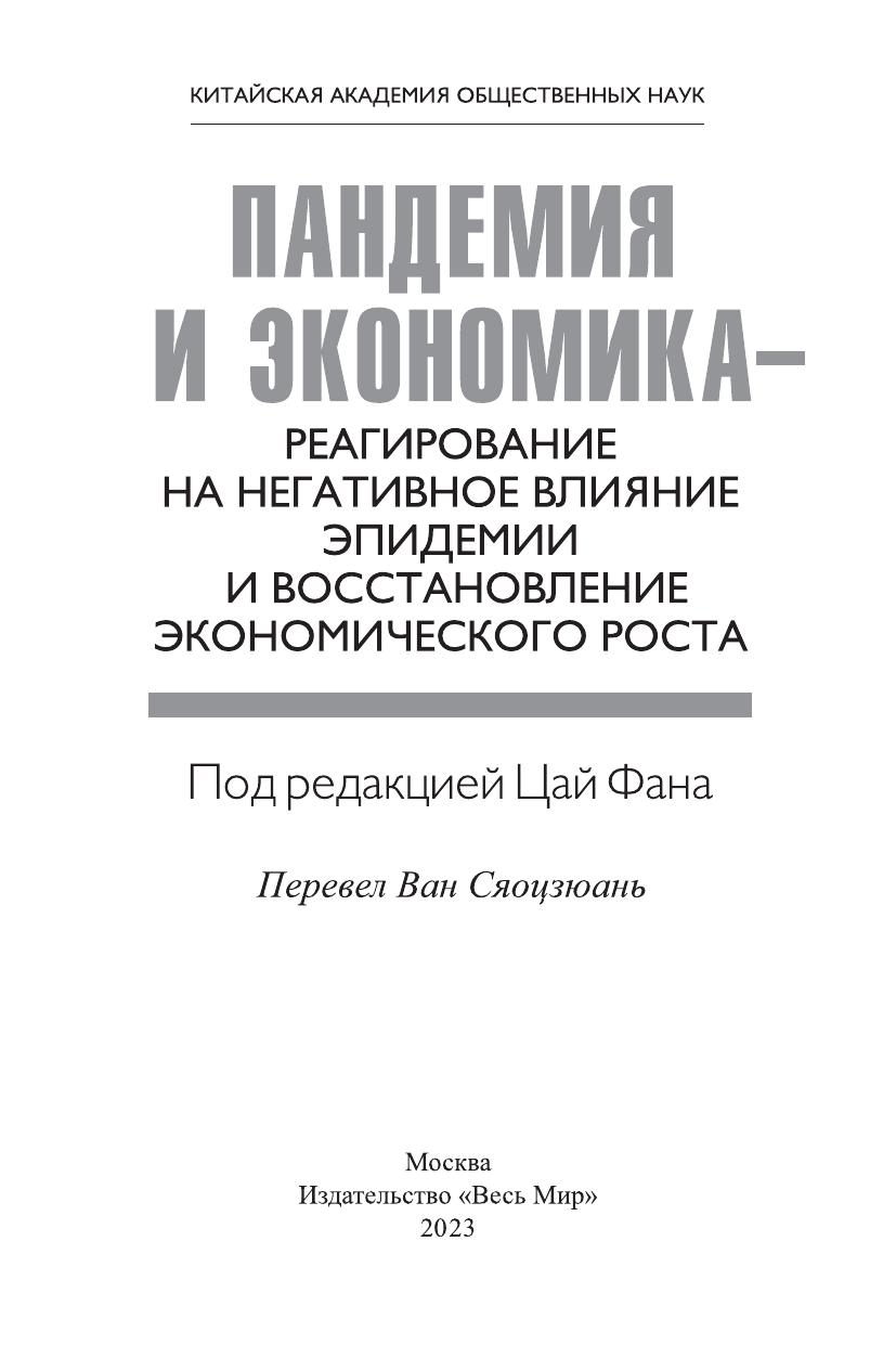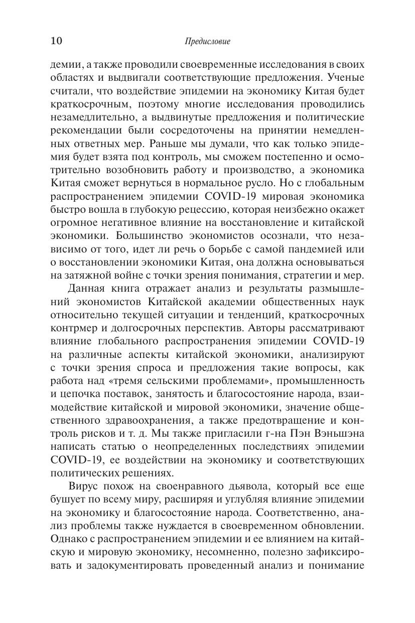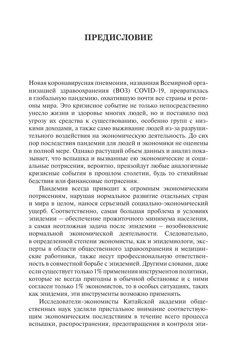 Данная книга отражает анализ и результаты размышлений экономистов Китайской академии общественных наук (КАОН) относительно текущей ситуации и тенденций, краткосрочных контрмер и долгосрочных перспектив в контексте пандемии COVID-19. Авторы рассматривают влияние глобального распространения эпидемии на различные аспекты китайской экономики, анализируют с точки зрения спроса и предложения такие вопросы, как работа над «тремя сельскими проблемами», промышленность и цепочка поставок, занятость и благосостояние народа, взаимодействие китайской и мировой экономики, значение общественного здравоохранения, а также предотвращение и контроль рисков.